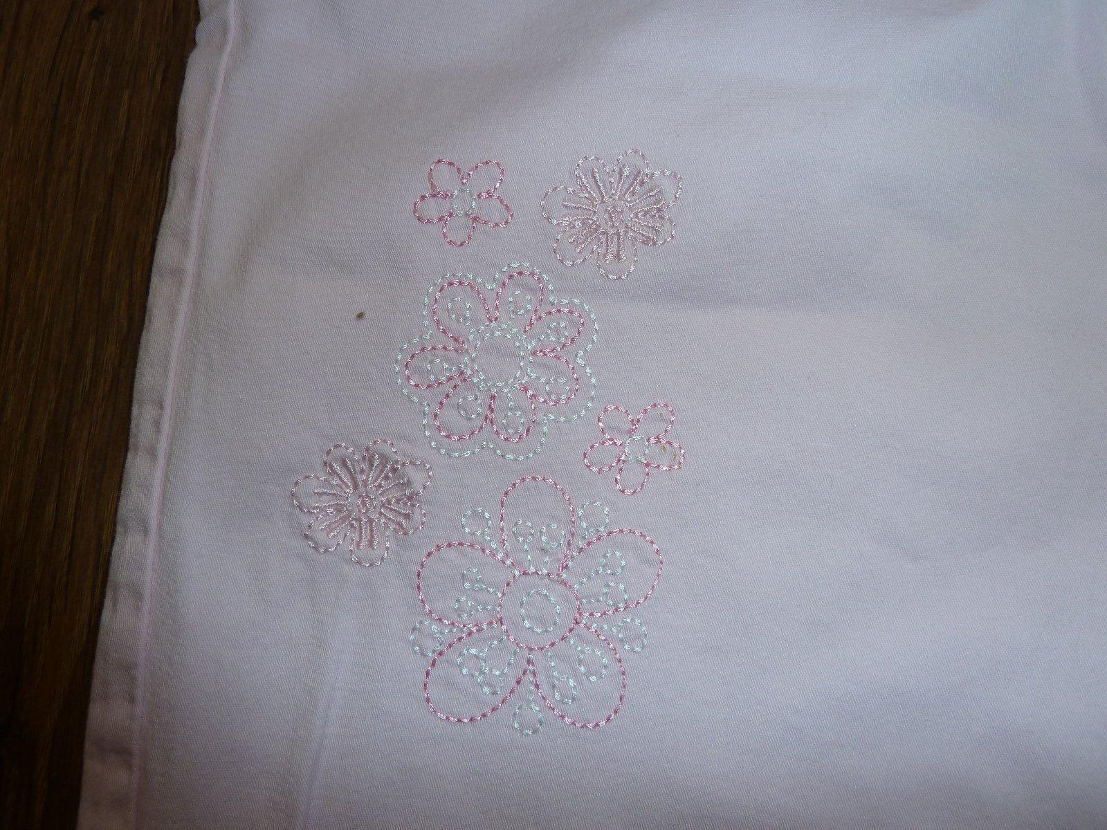 dievčenské trištvrťaky , ako nové, s nastaviteľným pásom, na jednej nohe výšivka
