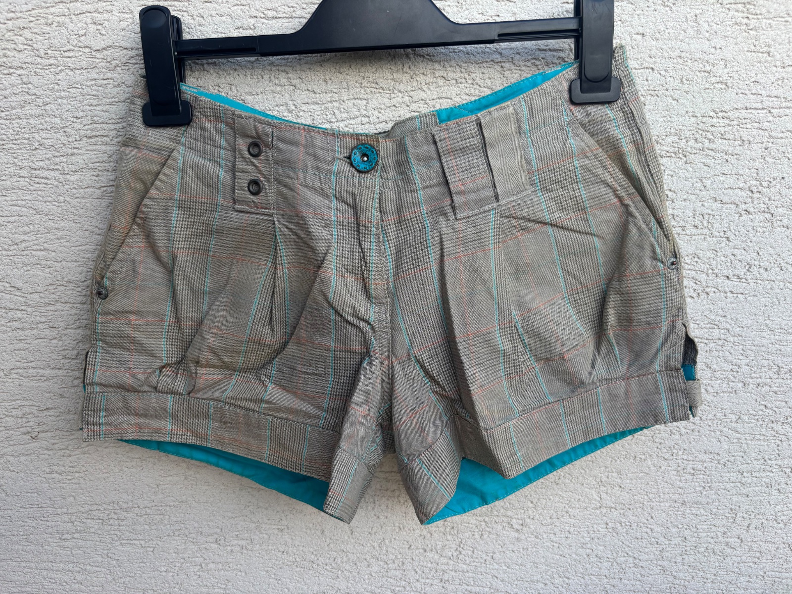 Kockovane šortky z príjemného materiálu. Veľkosť 36. Vyzerajú ako nové.