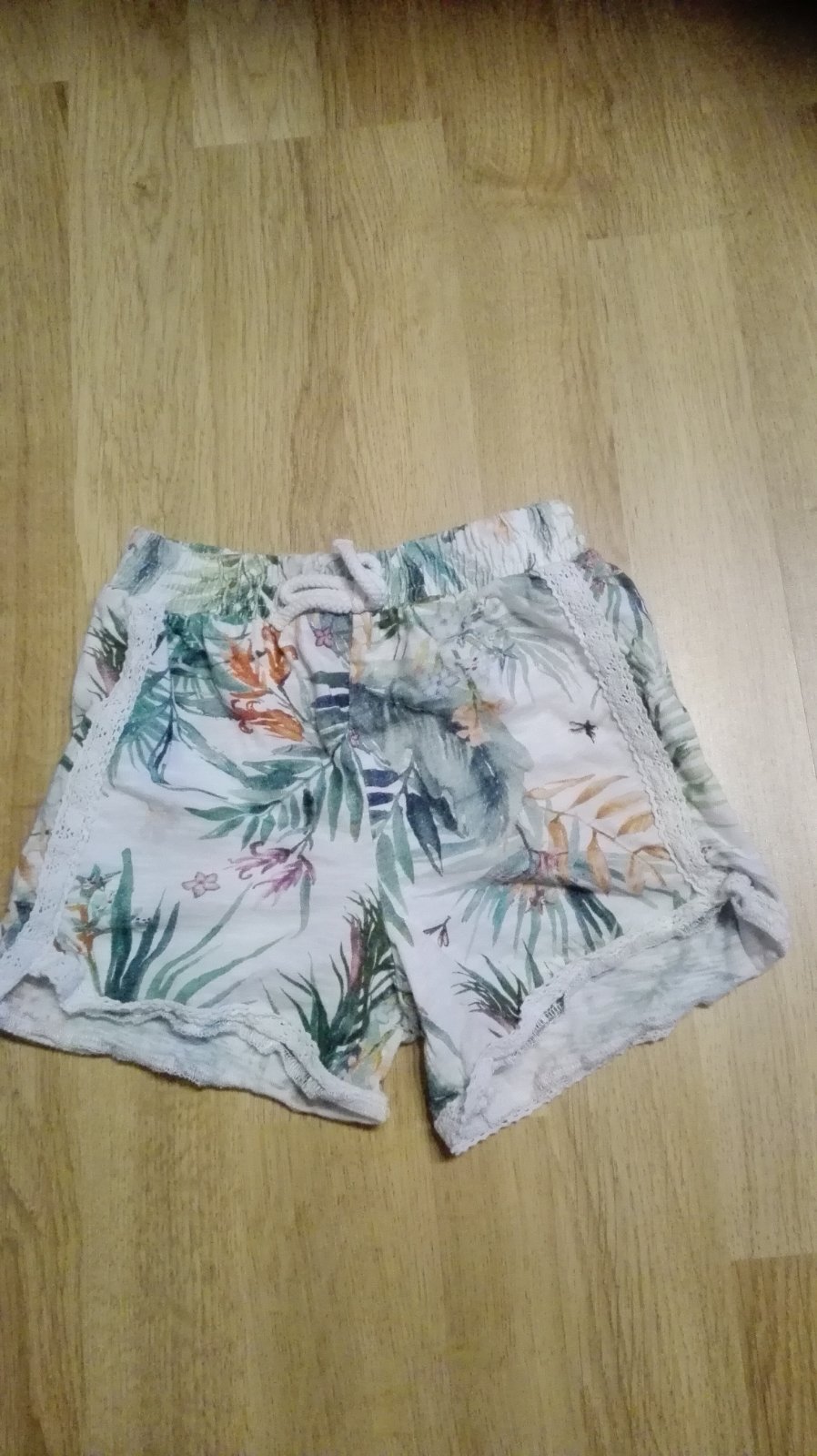 Bavlnene sortky,velkost 3-4 roky,celkova dlzka merana zboku 21 cm,v pase je guma 22-32 cm.