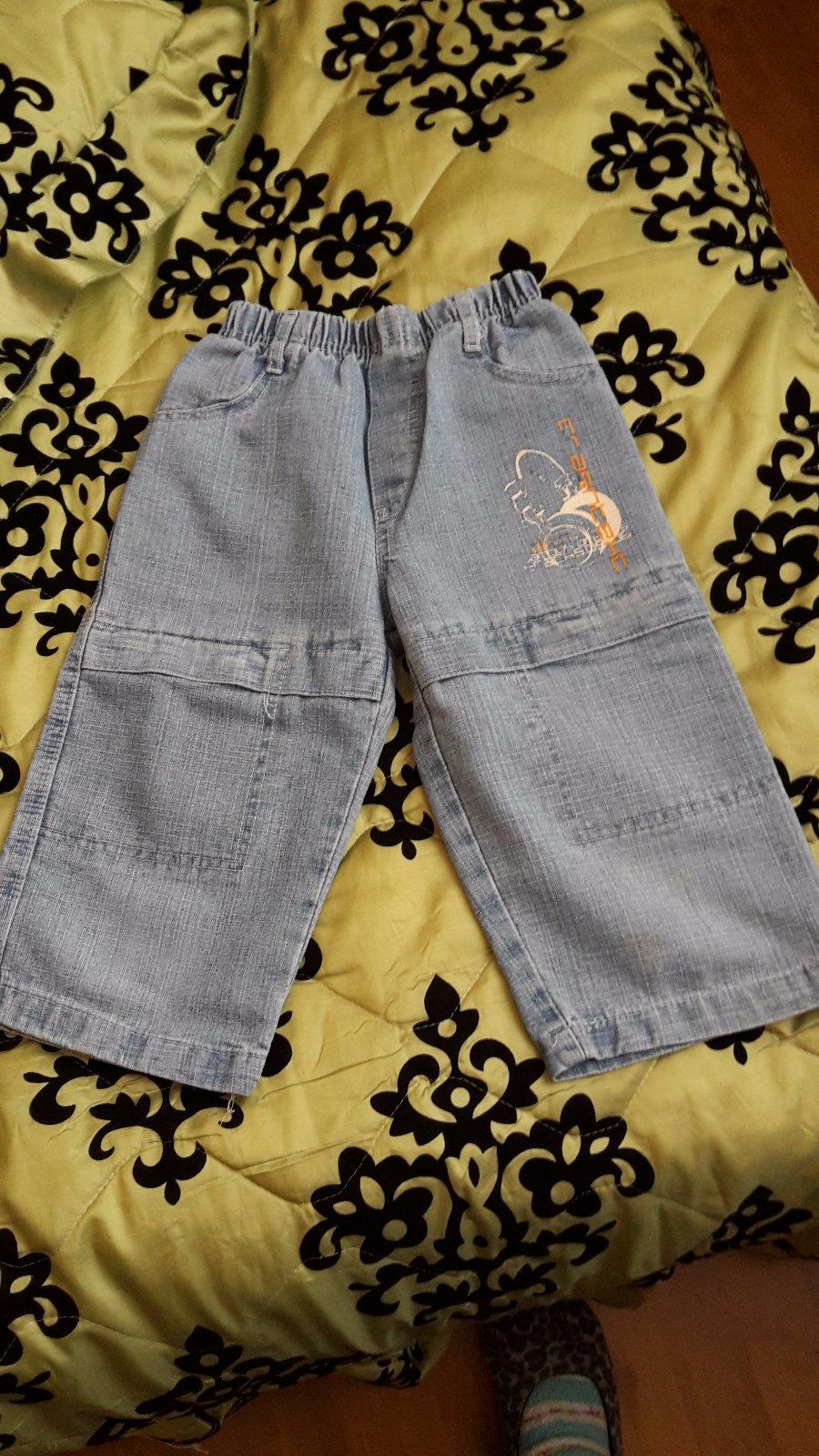 na donosenie - vyblednutá farba, veľkosť 122-128, 7-8 rokov, celková dĺžka je 78 cm, pás je 2x25-33, majú vrecká vpredu aj v zadu, dajú sa vyhrnúť,