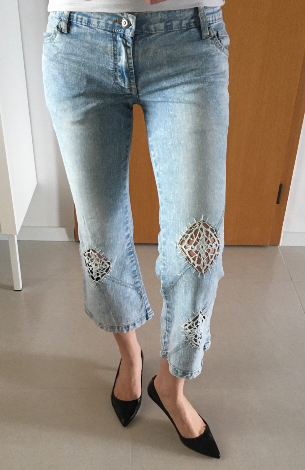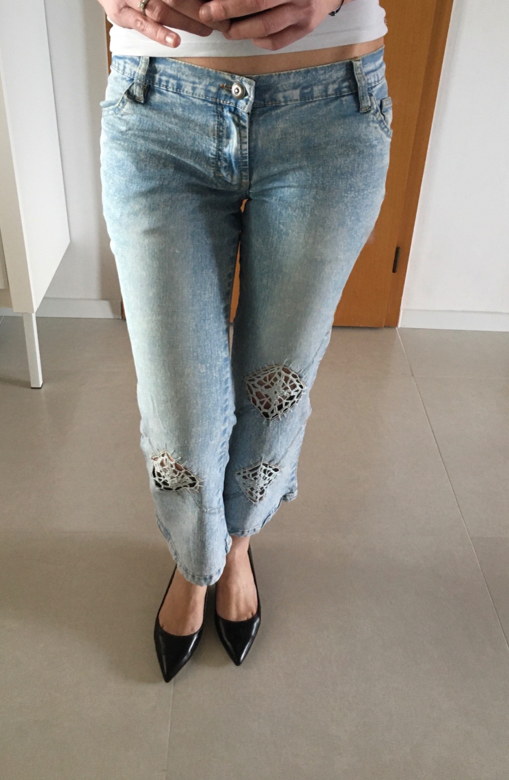 Letne, 3/4 rifle, veľmi pohodlne. Na zadnej strane sa mi trochu pofarbili z iného pradla, no nie je to moc vidieť.