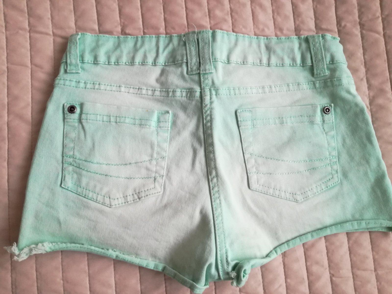 Kraťasy sú nové, veľkosť je uvedená 140, v páse je regulovateľná guma.