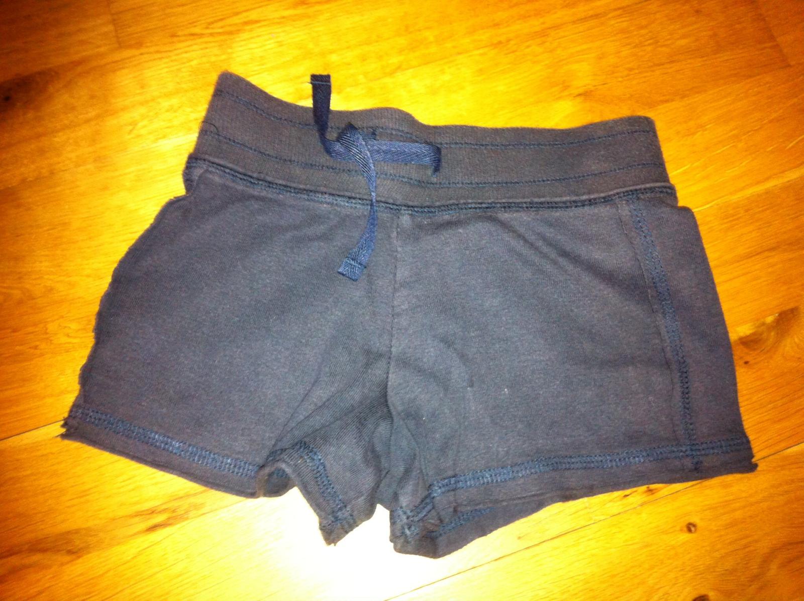 Pekne mikinove kratasky- nove, s visackami. Rozmery: celkova dlzka: 24,5cm, dlzka od rokroku po spodok: 4cm, sirka v pase: 22cm (snurka v pase je funkcna)