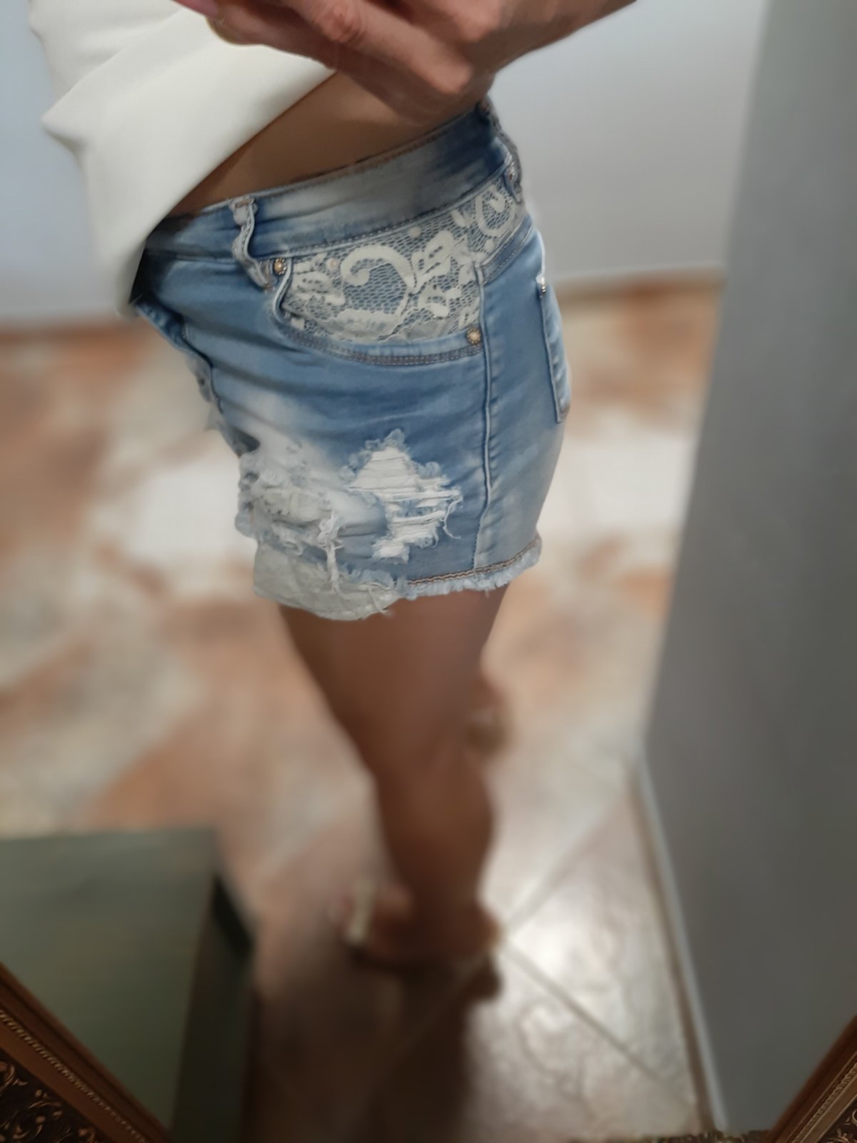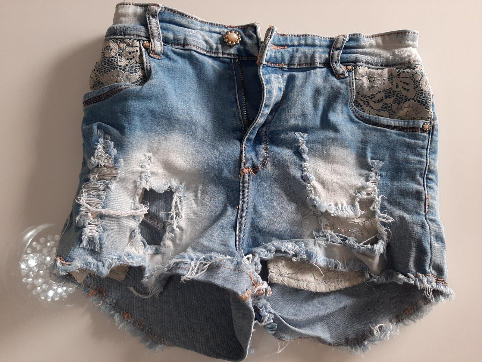 Dámske šortky v super 100% stave.Štitok je odstrihnutý, avšak mala by to byt veľkosť L. Majú stredne vysoký pás.