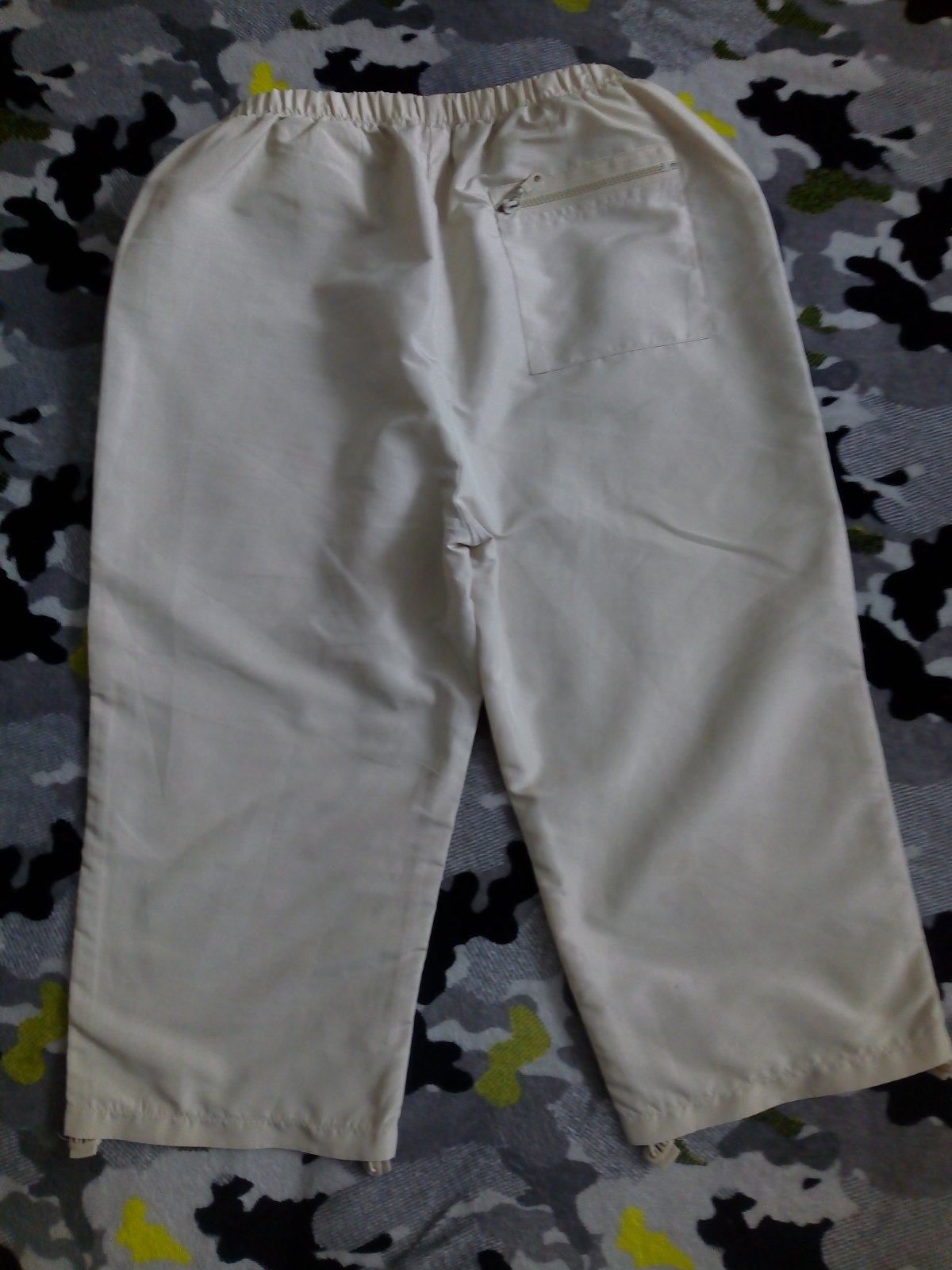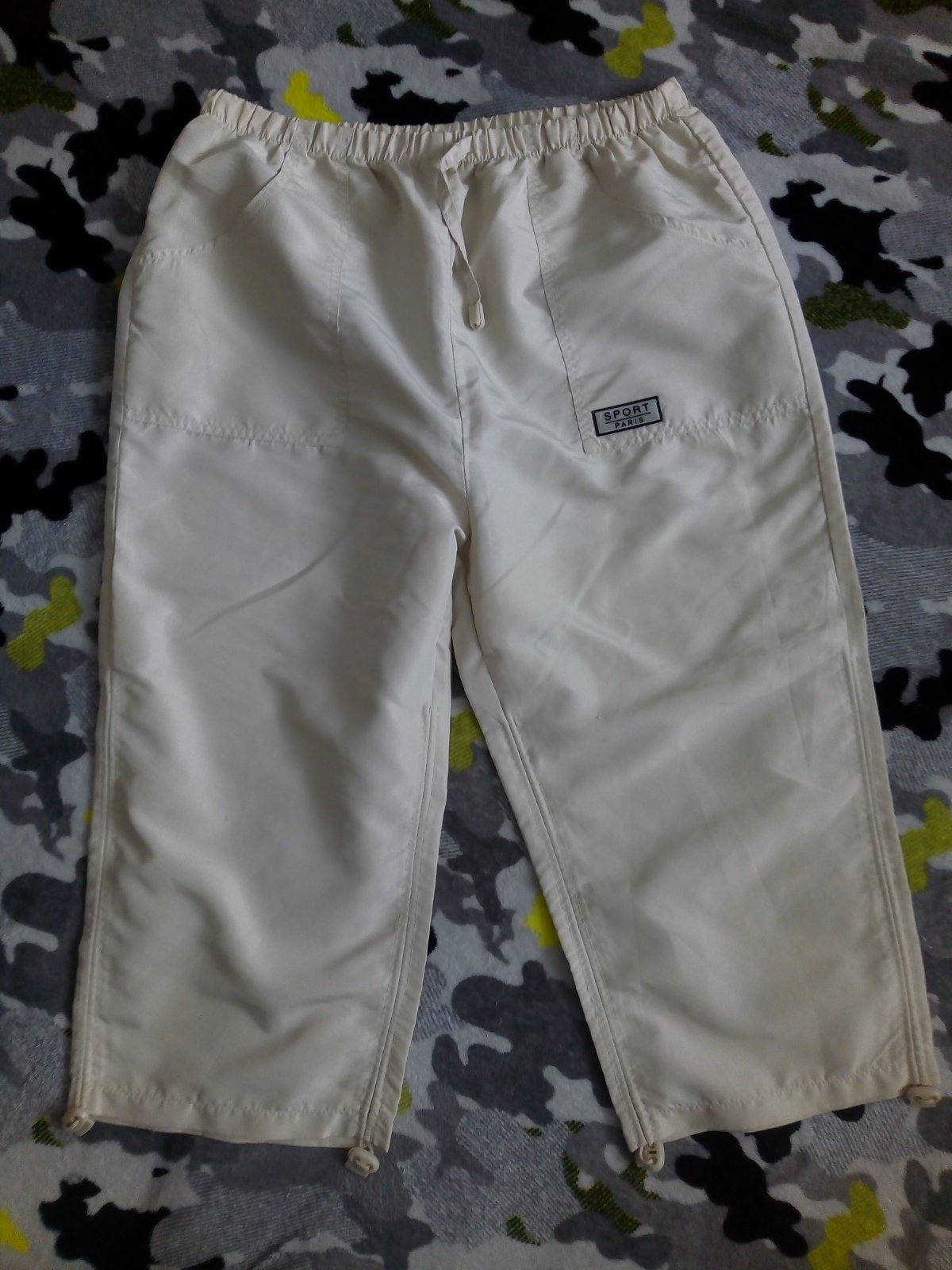 Pekné tenké trištvrťáky.Dĺ.76cm.Rozkrok 45cm,boky 57cm,guma v pase sa natiahne do maxima 51cm x2.V páse chýba jedna šnúrka.Všimla som si pri fotení.V pase je gumička,tak tá šnúrka nie je potrebná.