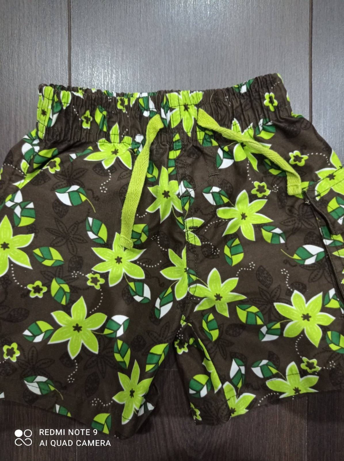 Kraťasy sú nosené, ale zachovalé. Je na nich pár fliačikov, ktoré nešli vyprať. Inak sú bezchybné. V páse pružná gumka. Dĺžka 31 cm.