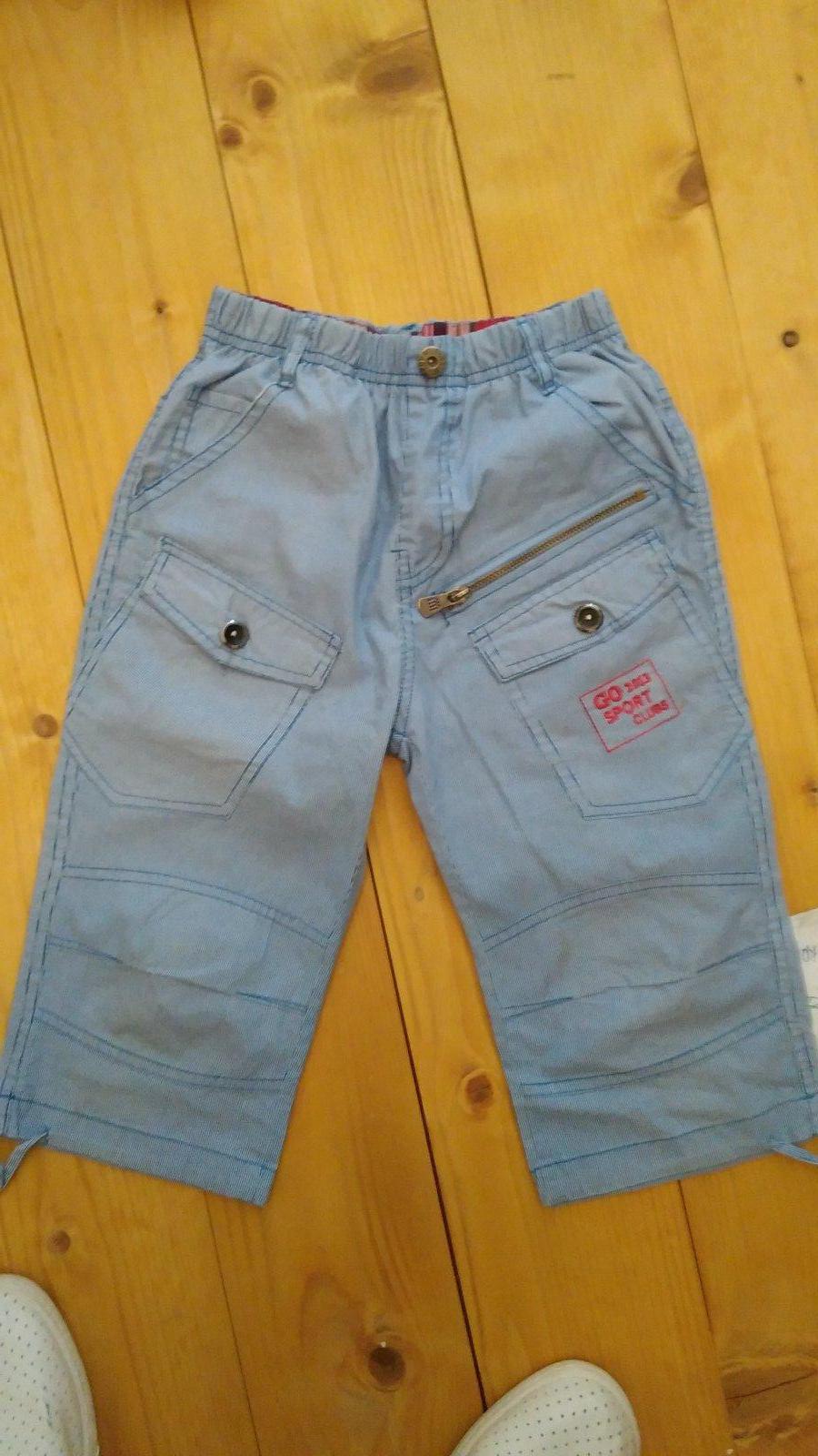 Predam tieto trojštvrťove kraťasy, dlžka 52cm,pas gumička, natiahne sa do 34cm, bez natiahnutia 26cm, skor pre stihleho chlapca. Bez poškodenia. Material 100%bavlna, vzdušny matetial.