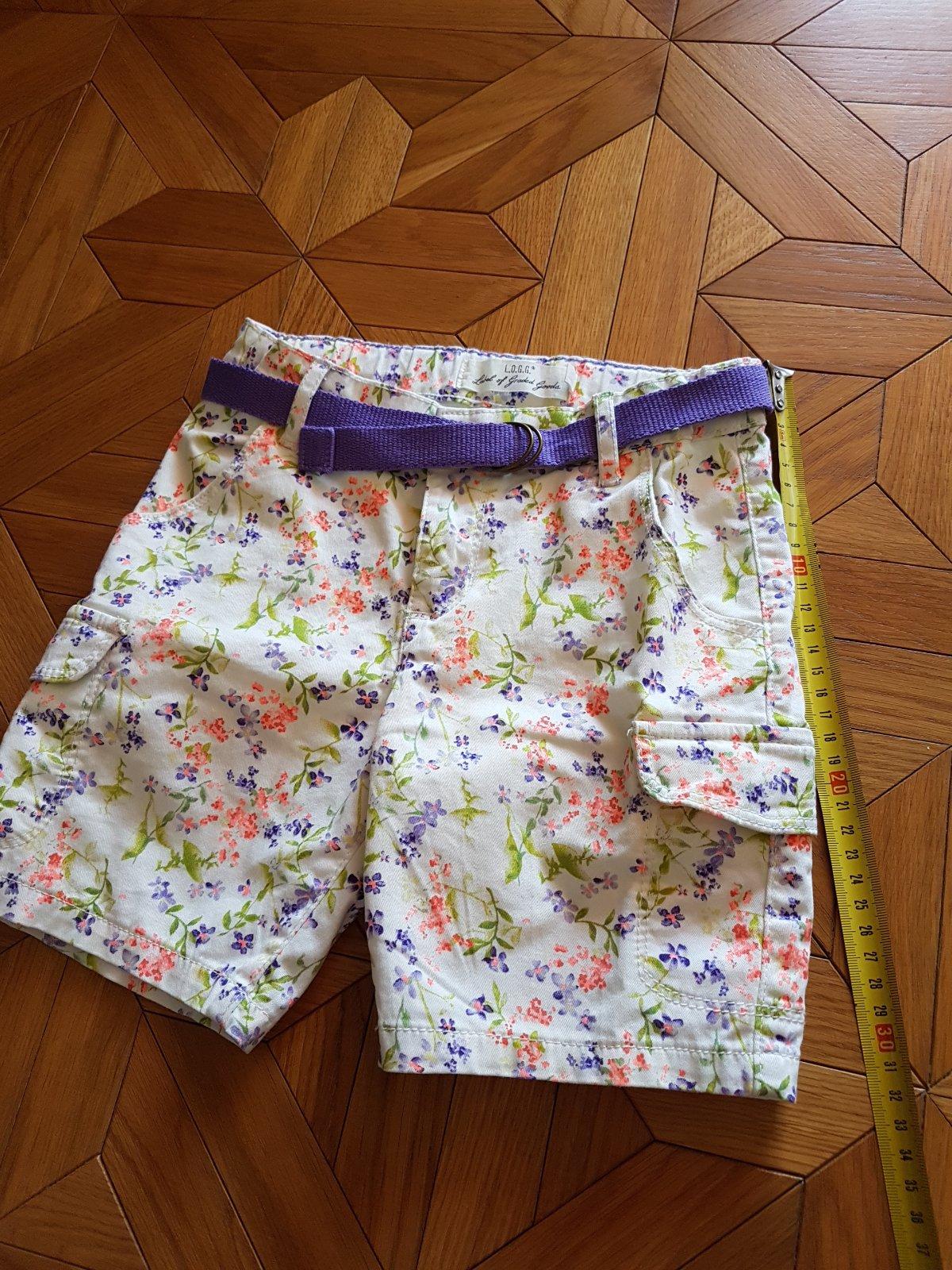 Kraťasky H&M, 116, 5-6 rokov, ale natiahla ich aj moja 10 rocna dcera. Pas je regulovatelny. Su uplne nove, len som z nich odstrihla cenovky ale dcera ich nikdy neobliekla takze su neposkodene, ani neprane, nove.