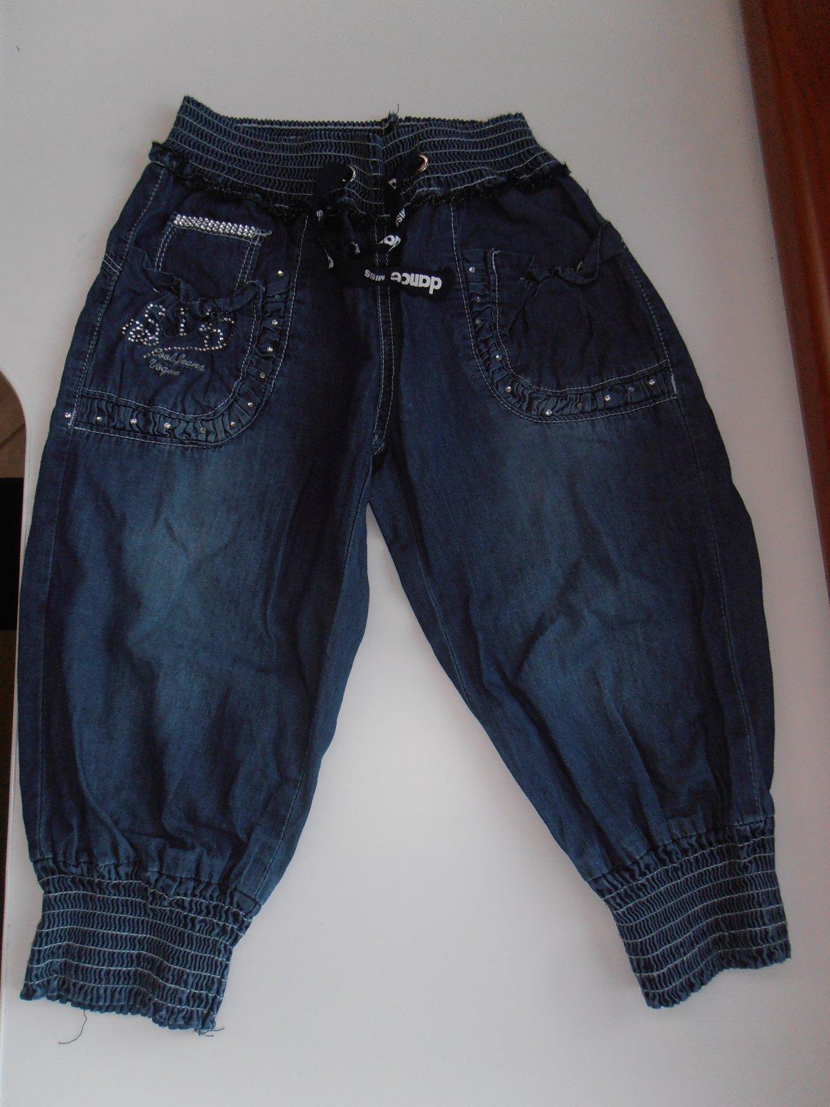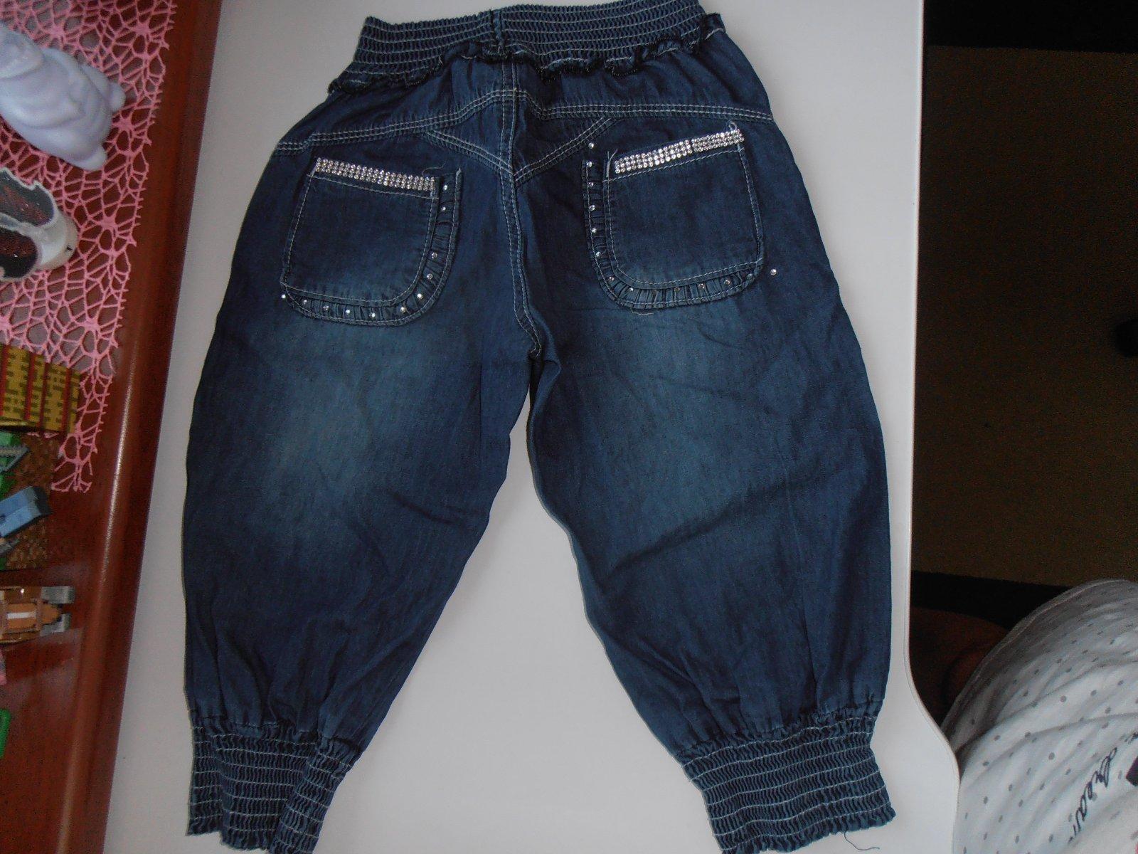 Predá dievčenské rifľové nohavice tenká rifľovina. V páse sú na gumičku a šnúrku. Veľkosť je na 7-8 rokov. Písaná je na 10 rokov, ale to nie sú na taký vek. Majú aj pekné strieborné bliskáčiky.