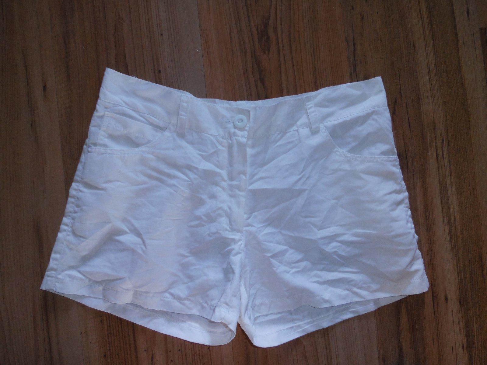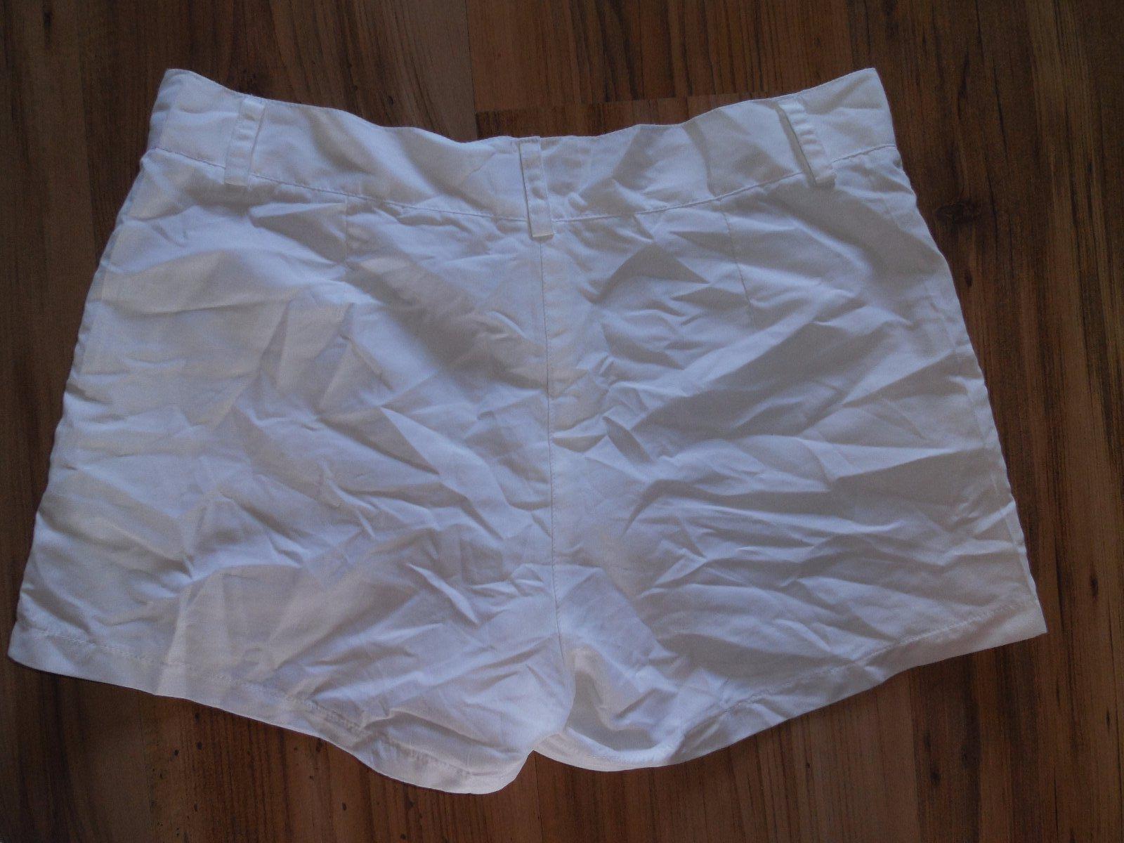 Biele šortky, zn, C.A.P., min. nosene,bez poškodení, je potrebné vyžehliť, miery sirka pas 38 cm, predny sed 22 cm, zadny sed 34 cm, a material je taky pevny, nie su elasticke,
