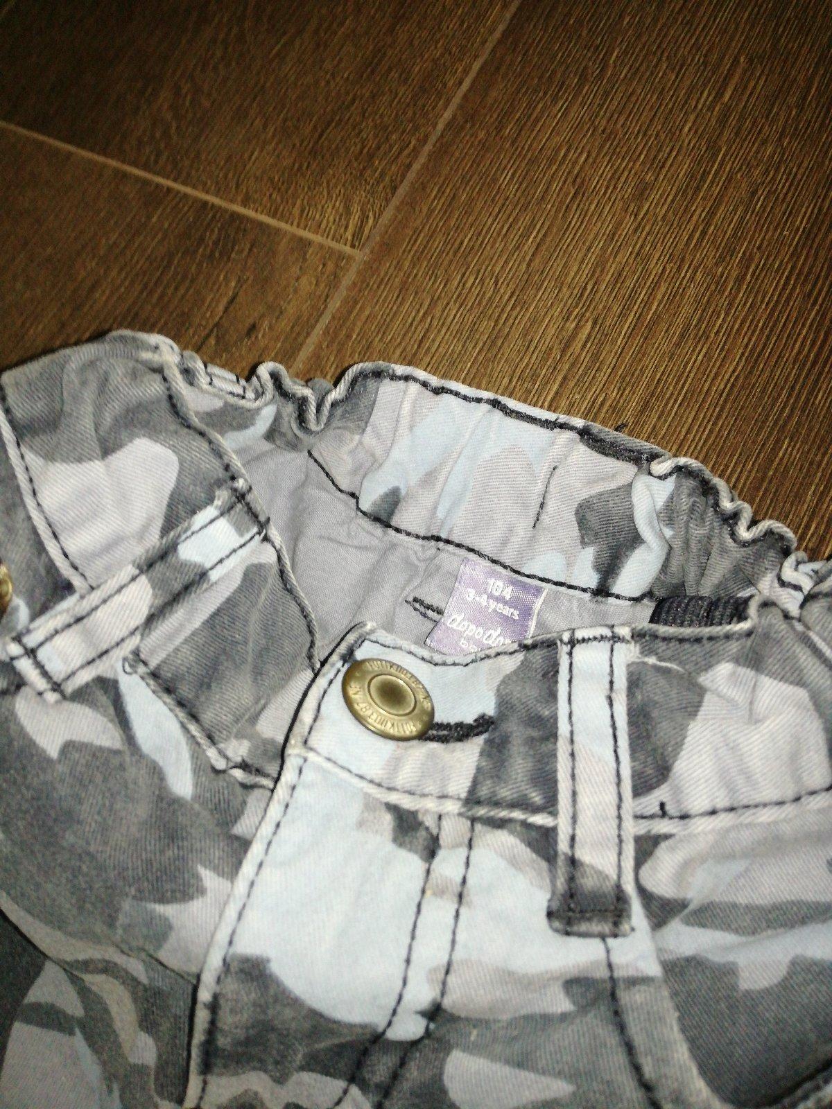 Maskáčové kratasky vo veľkosti 104...boli naše obľúbené,takže poznať prianie....ináč bez vady