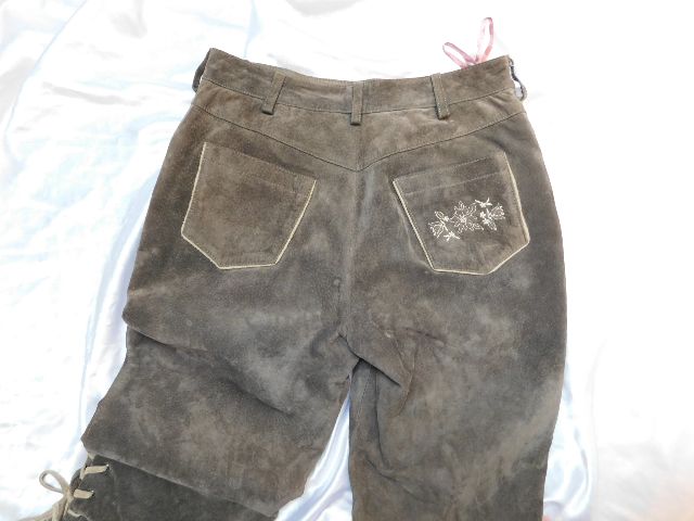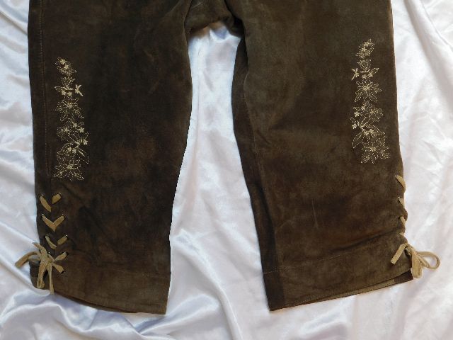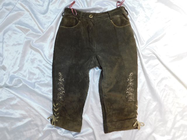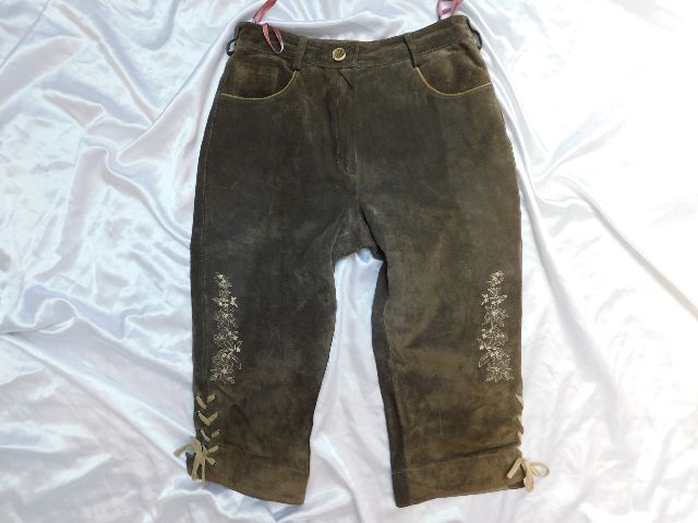 Damske semešove 3/4 nohavive/kroj,hnedej farby,zdobene vysivkou,s podsivkou,na boku šnurovka.100%prava semišova koža.super stav,ako nove. PC 99€
