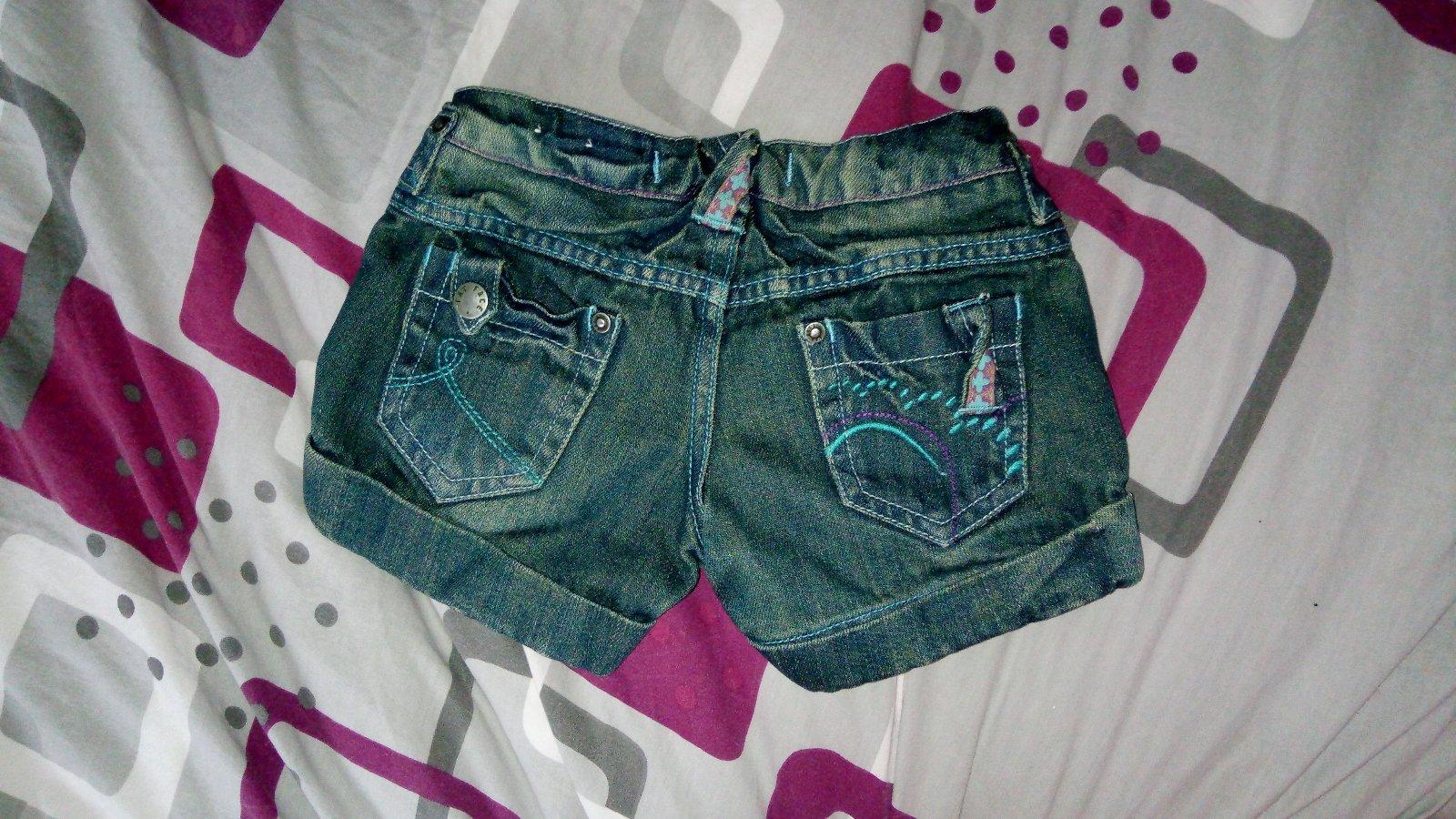 Ponúkam na predaj krátke dievčenské šortky- veľkosť 92/98. Cena spolu 3,- Eur.