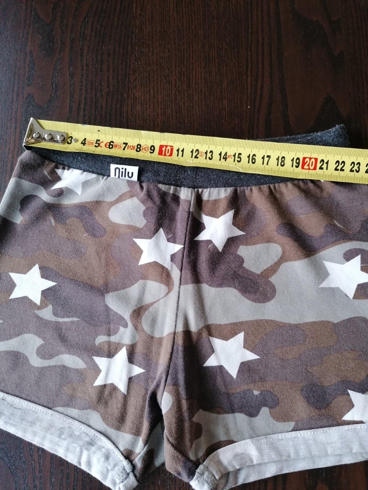 Pružné a pohodlné kraťasy zn. Terranova. Vel. označená 29, sedí na S. Dl. 30 cm, pás 72 cm. Sú v 100% stave. Tričko grátis !!!
