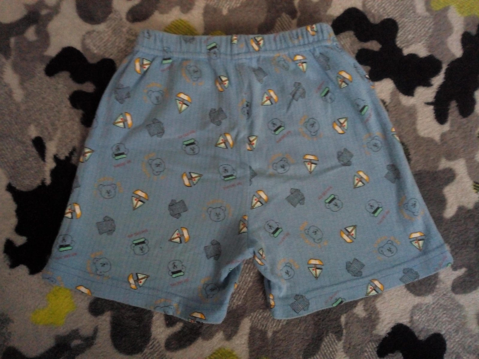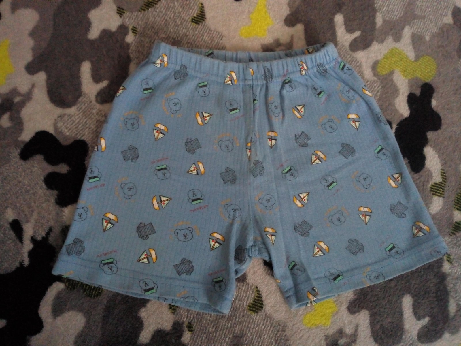 Pekné, zachovalé bavlnené detské kraťasky bez poškodenia.Dĺ. bok 26cm,rozkrok 9cm.Gumička v pase sa natiahne do max.33cmx2