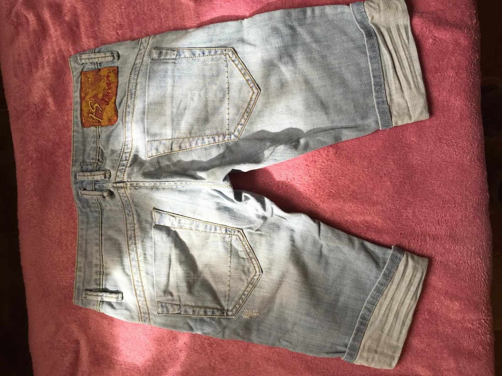 Ako nove, super riflovina, pekne su na postave ;) pas: 2x41cm, dlzka od rozkroku: 32cm, vonkajsia dlzka: 48cm, predny sed: 18cm, zadny sed: 27cm, boky: 44cm
