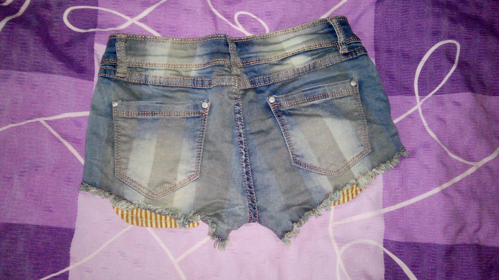 Dámske rifľové kraťasy ... s vreckami ... s farebnými gombíkmi ... značka: ONLY ... veľ. 30 - dlžka 35 cm, šírka pás 40 cm