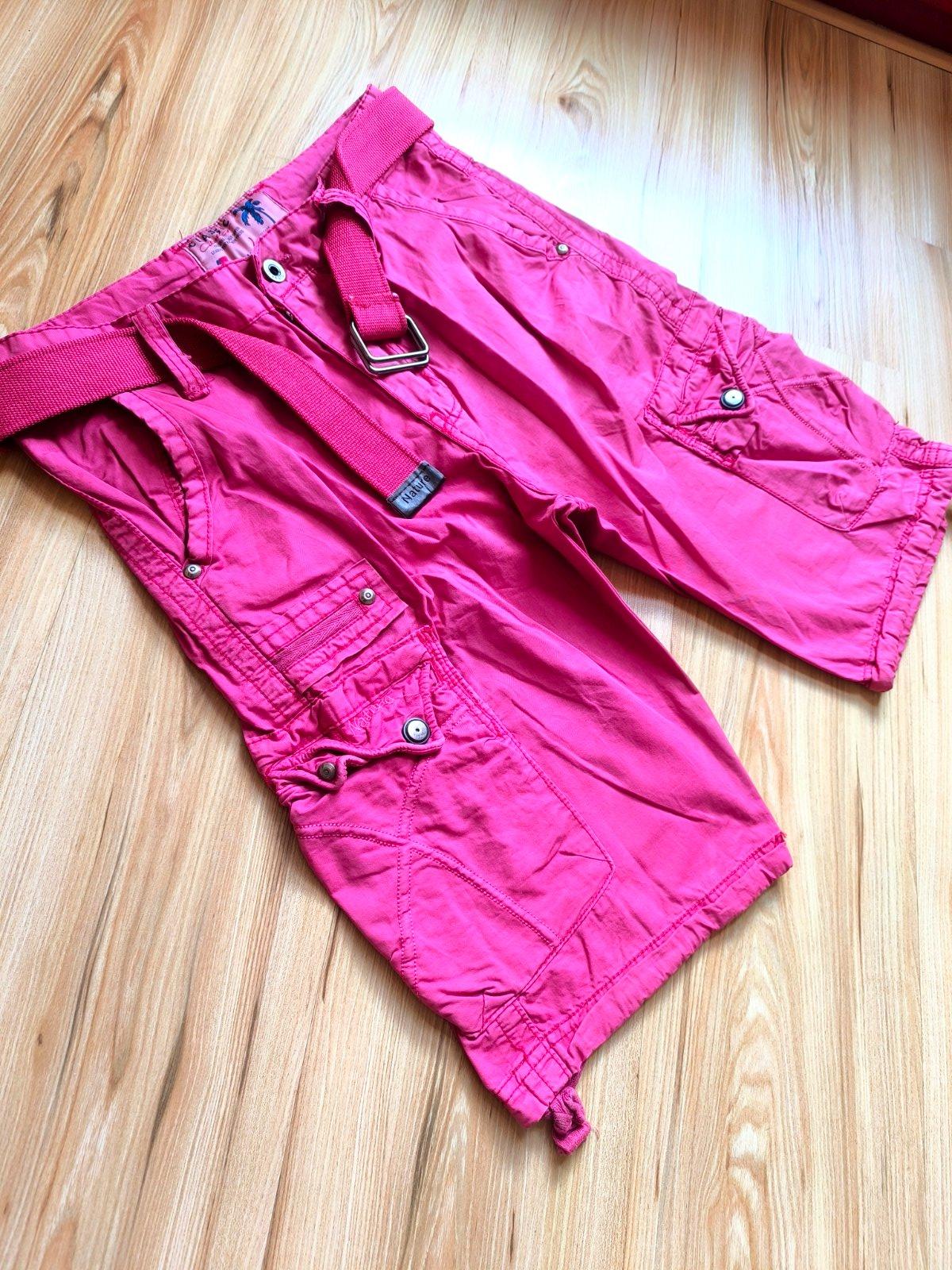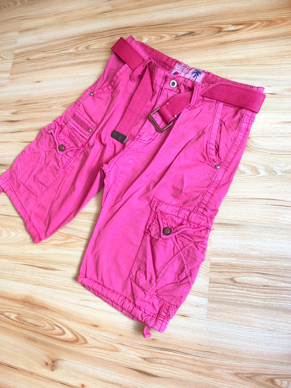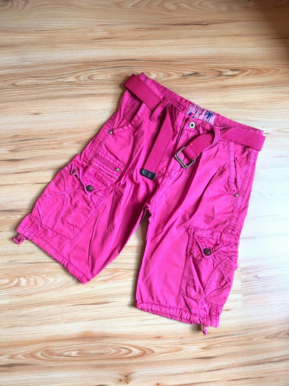 Pánske kraťasy ružovo - červenej farby, aj s opaskom, s vreckami, minimalne nosené, bez poškodení.