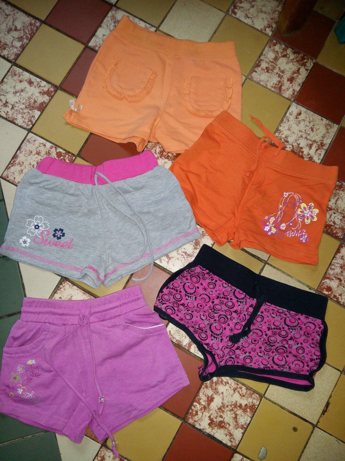 Vrchne bledooranzove nosene viac,maju zmolky 1e,oranzove ako nove vel.pisana dokonca 92 ale urcite vacsie 1,60e,sivo ruzove ako nove 2e,cierno ruzove adidaskove mali nosene 1,10e,fialkove maju fliacik(nevidiet moc) a mini zmolky 1e. Cena spolu za vsetky 6e