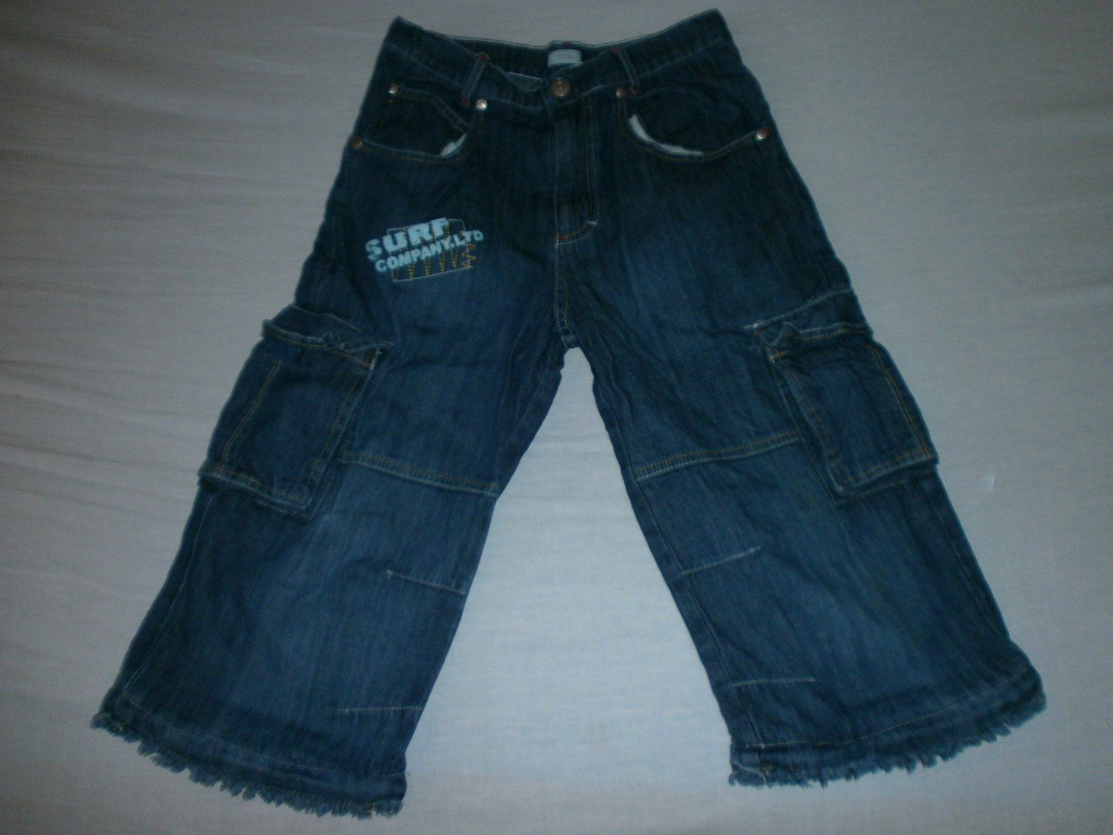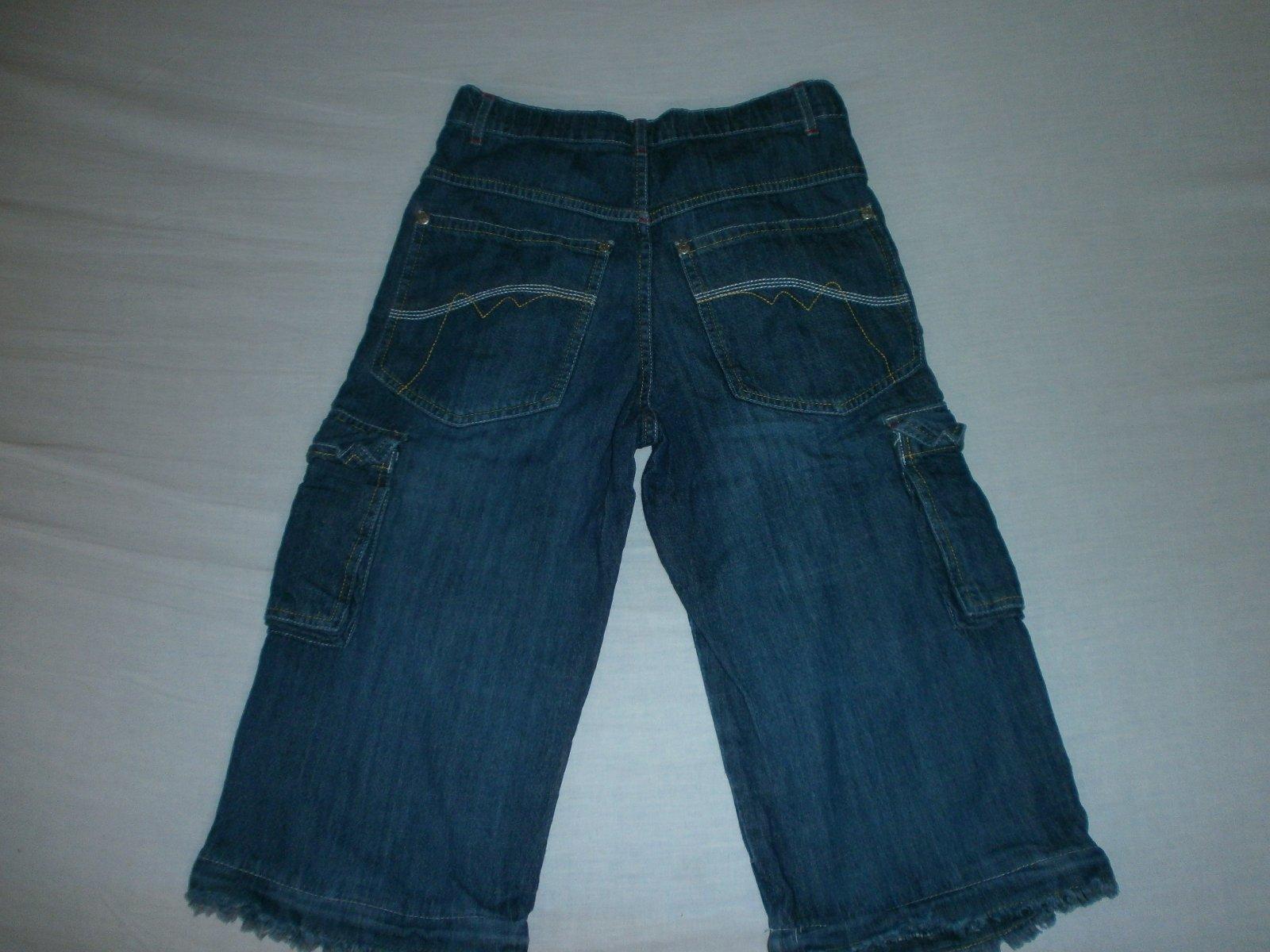 predám chlapčenské rifľové trojštvrťáky veľkosť 134/140,značka TCM, farba tmavomodrá ,rozmery: obvod pásu-2x32cm,dĺžka od pása nadol:60cm,dĺžka od rozkroku nadol:35cm,zapínanie na zips a jeden gombík,predný diel: dva vrecká,na bokoch: dva vrecká na zapínanie na suchý zips,zadný diel: dva vrecká,predný diel-nápis: surf company.ltd