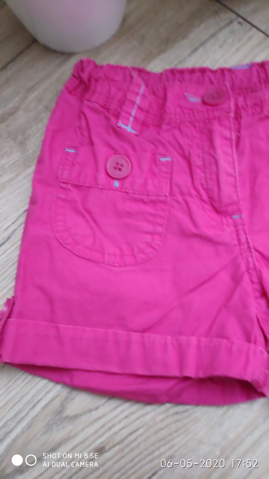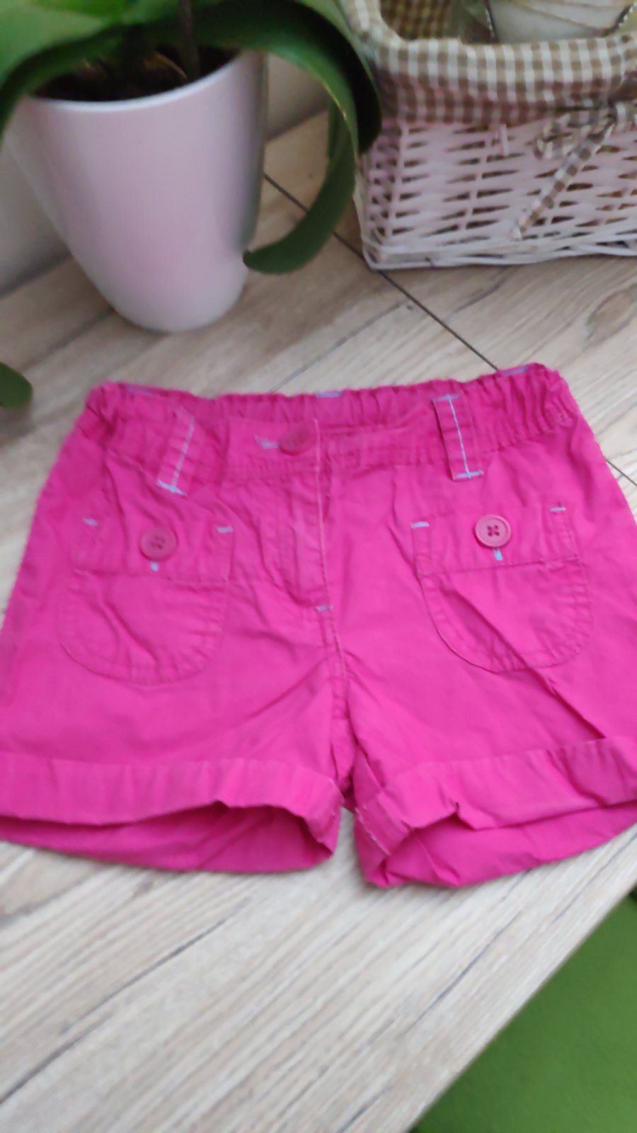Kratasky sú v super stave, v páse sa daju regulovať gumou, šírka v bokoch 31 cm, vysacku som odstrihla a nepamätám značku, velkost som odhadla podľa iných, osobný odber Prešov alebo pošlem poštou 😉
