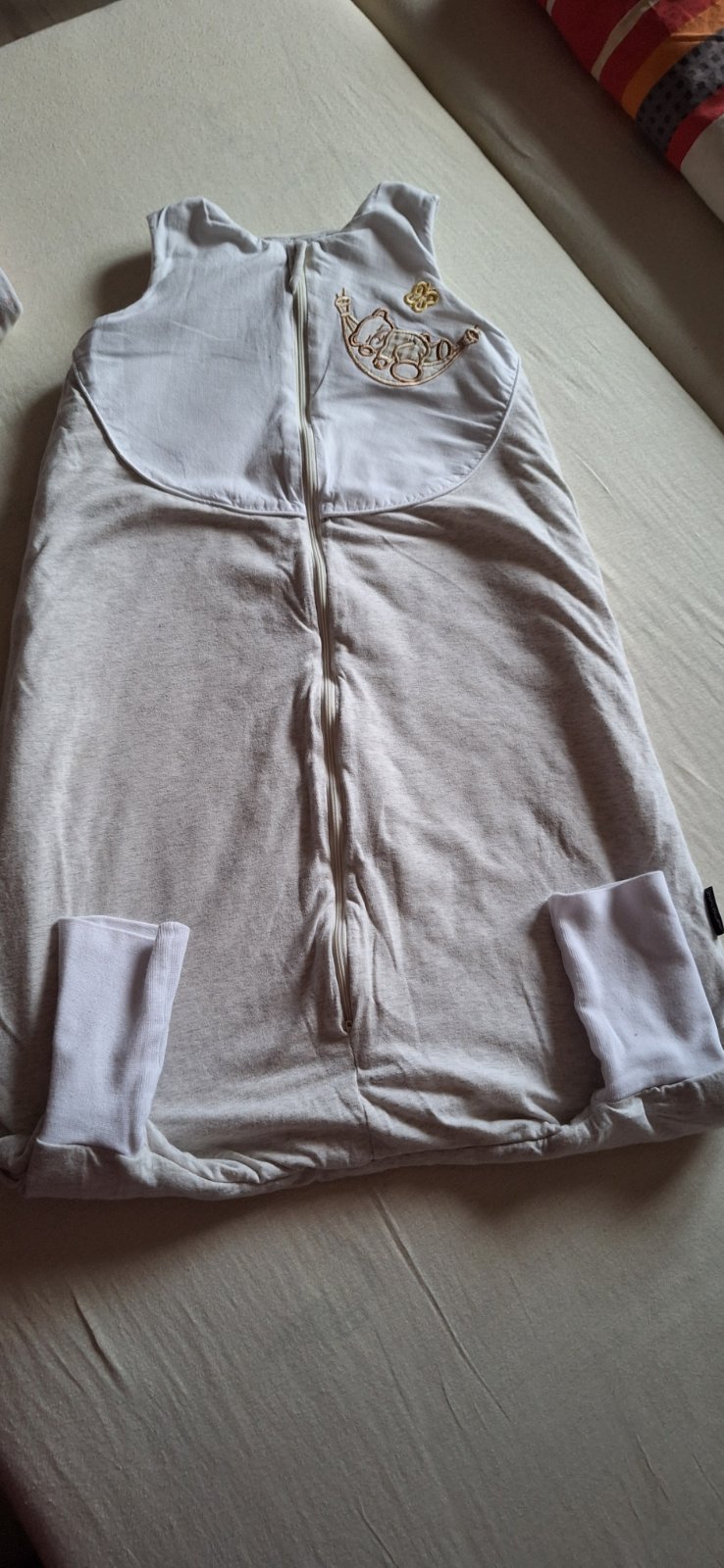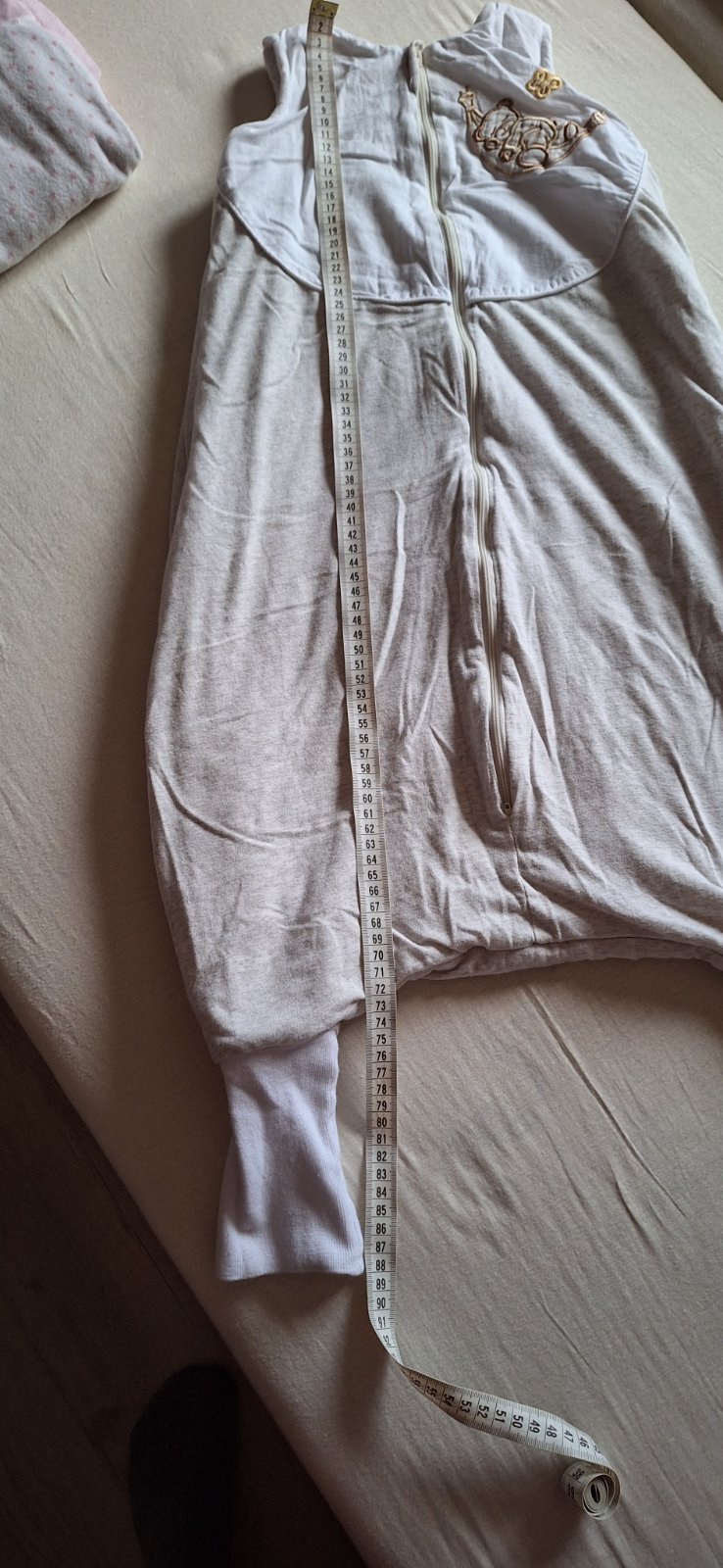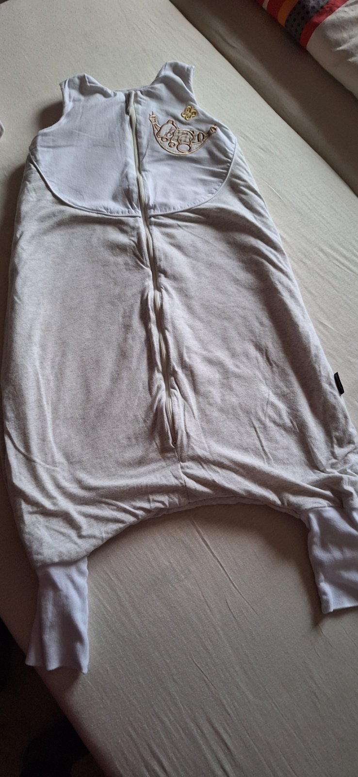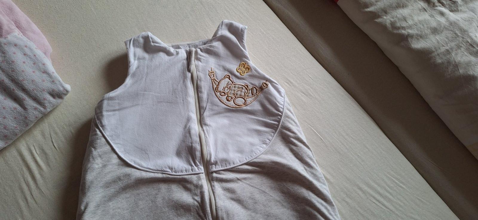 Celoročný spaci vak s nožičkami. Po jednom dieťati v super stave, vhodný pre chlapca aj dievča. Obojstranny zips, krytka brady, mäkke elasticke patenty. Celkova dĺžka 90 cm.