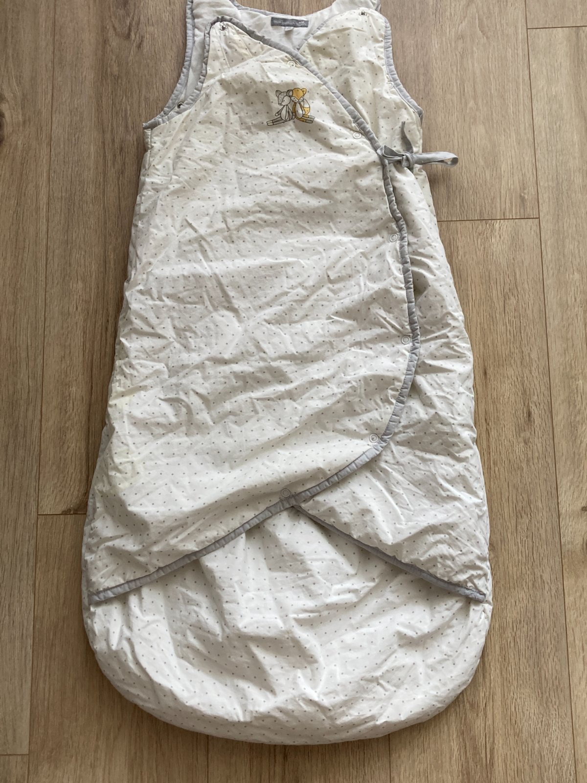 Darujem stredne teplý zavinovací spací vak, zapínanie na patenty. Na vaku je zopár žltých fľakov, ktoré nejdú vyprať.