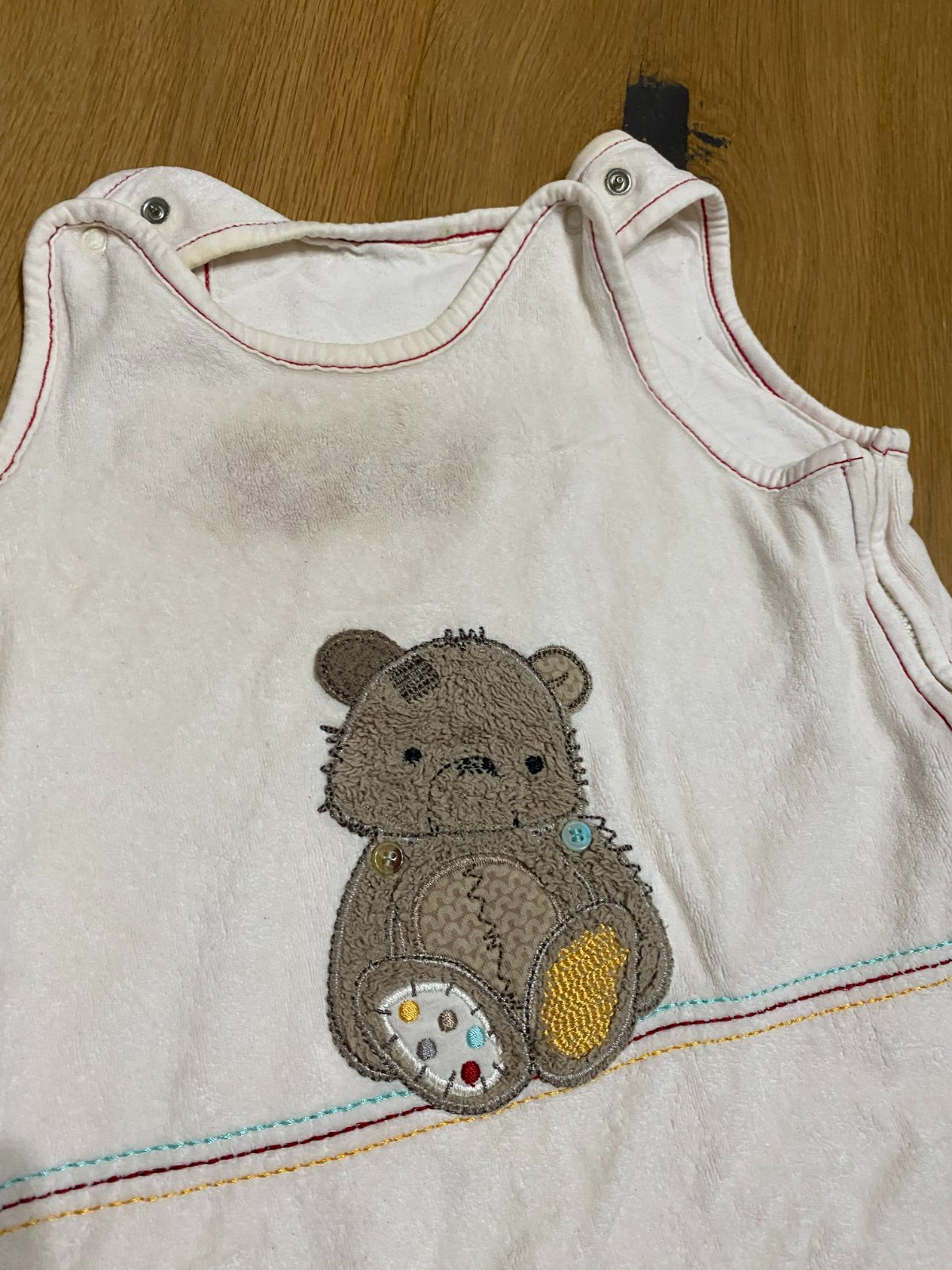 vpredu má fľak kvôli tomu, že som tam dávala mentolový krém pre ľahšie dýchanie keď bola dcérka chorá.