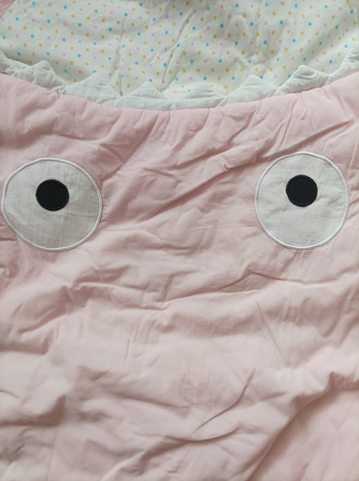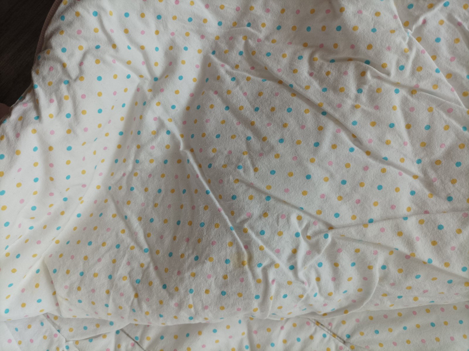 Má prichystané otvorí na pás čo som neprestrihla. Použivali sme na jar a jeseň v kocari alebo v postieľke. Je veľmi pohodlná dcérke sa vnom veľmi dobre spinkalo. Veľkosť: 98 x 73 cm Vnútorná podšívka: 100% bavlna Výplň: 100% Polyester