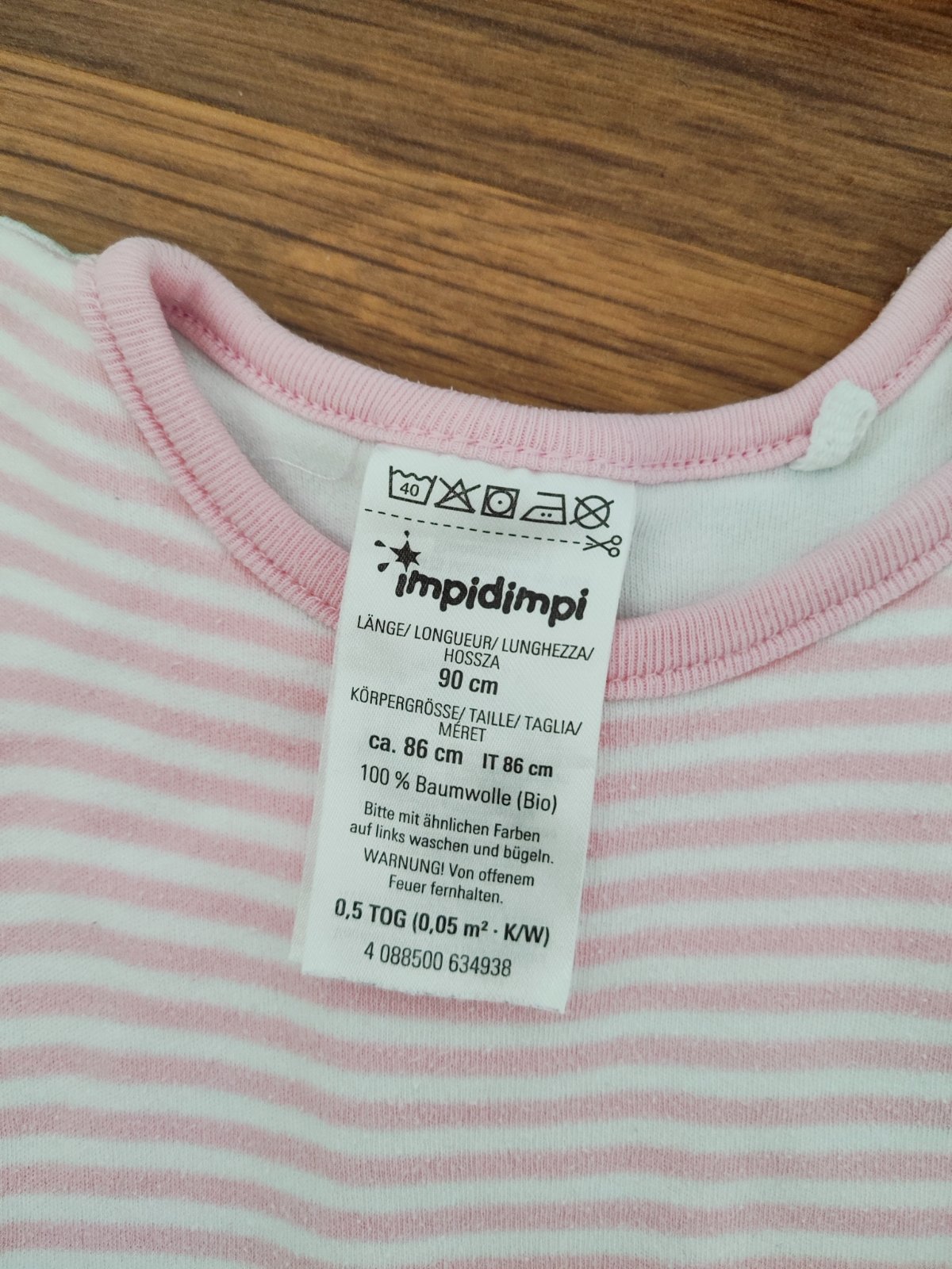 Teply, bledoruzoy spacak. Velkost uvedna 90 cm, spacak ma 80 cm. Zvonku zamatovy, zvnutra trickovina, medzitym tenka vrstva zateplenia. TOG nema uvedeny. *TP2*