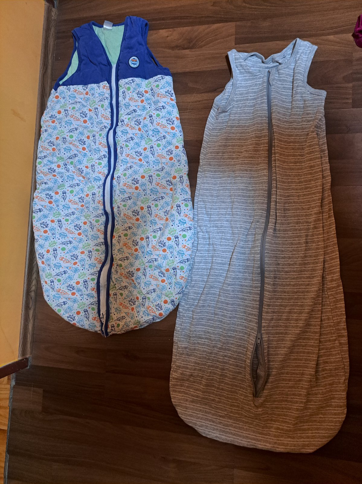 Predám spacie vaky,jeden menší je teply,na zimu,ma 100cm a druhy sivý je dlhší a ten je tenucky na leto.