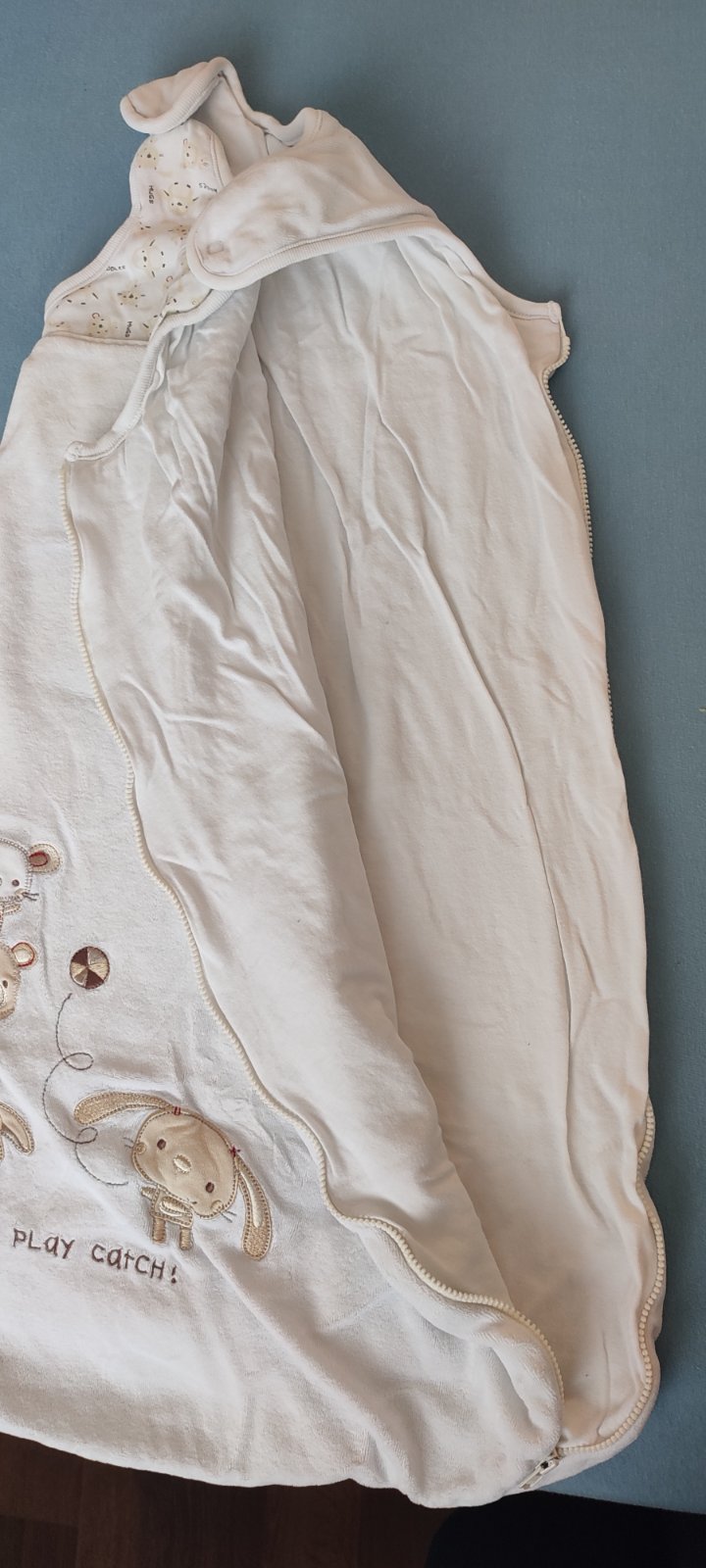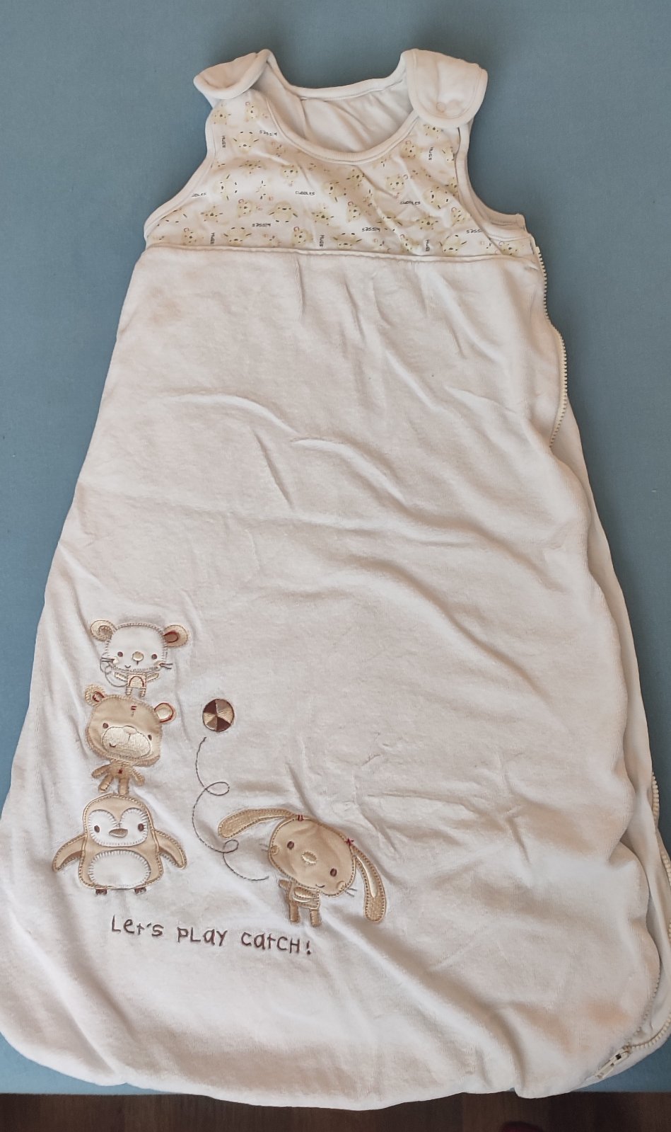 Ponúkam spací vak vo veľmi peknom stave bez chýb. Veľkosť 74 (6-12 mesiacov). Farba je neutrálna, vhodná pre chlapcov i dievčatá. Celková dĺžka je zachytená na fotografii.