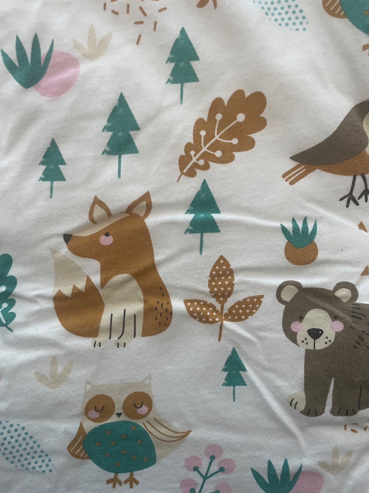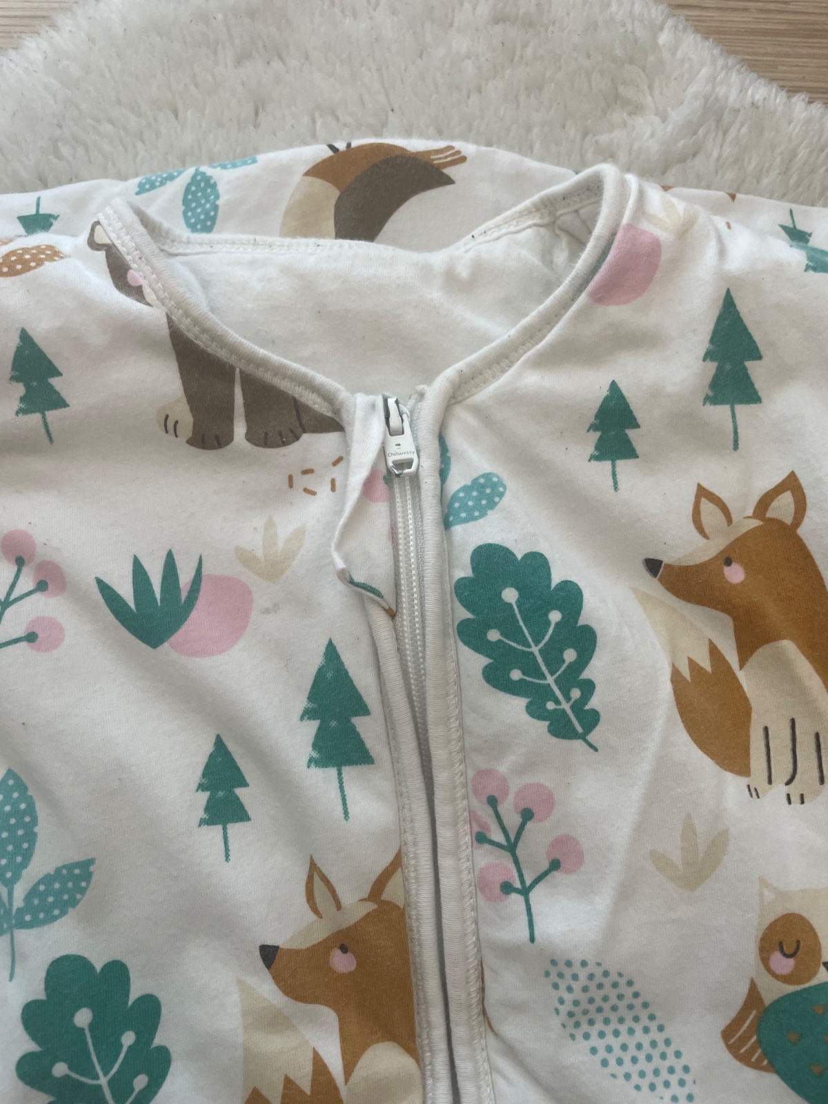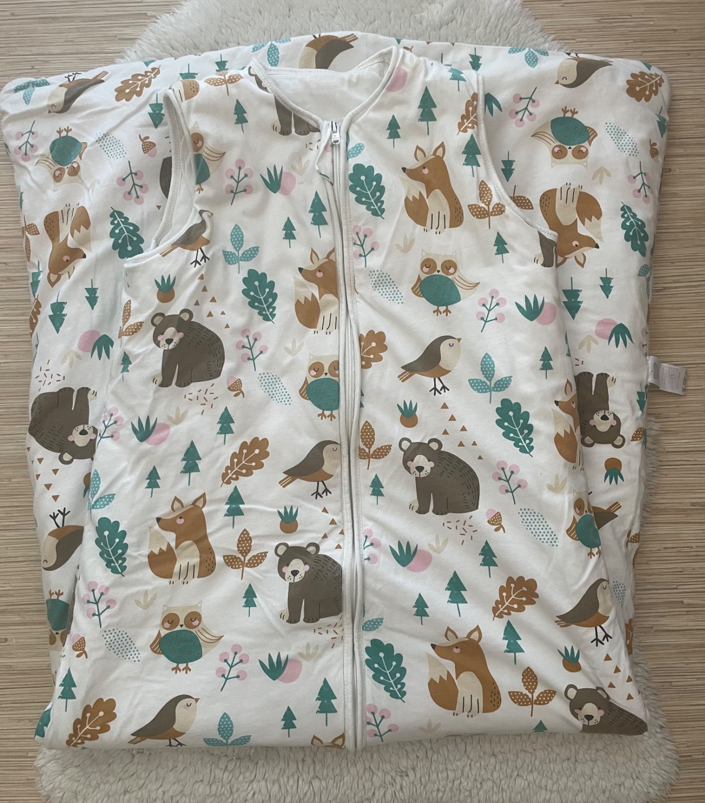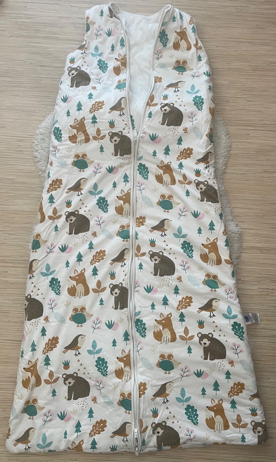 Bavlneny spaci vak s motivom zvieratiek s obojstrannym zipsom, pouzivany, bez dier a flakov, vnutri praci chlp, velkost 130