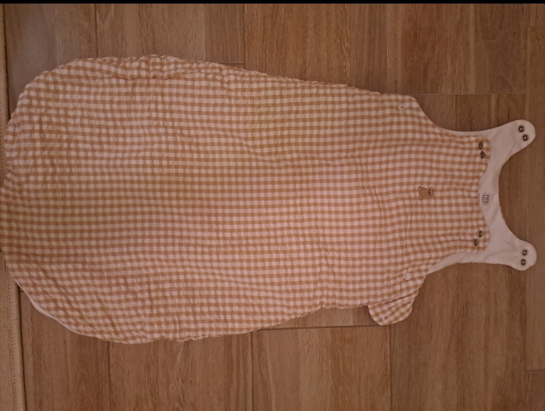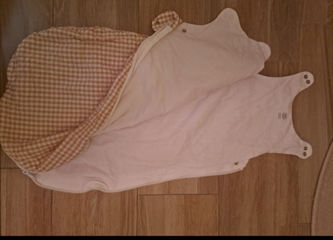 Spací vak, veľkosť 0-6 mesiacov , aplikácia je trosku poškodená vidno na fotke a zmolkny z prania