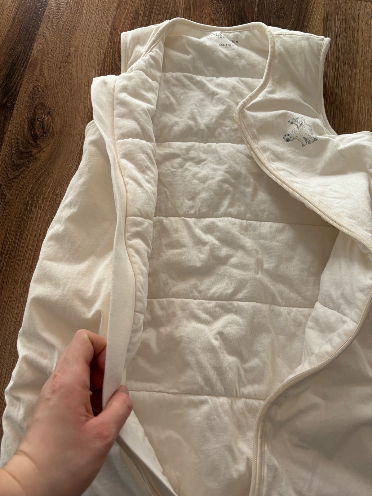 Predám jednu sezónu používaný zimný spací vak Tchibo. Píše sa veľkosť 104-116, no mojej dcére je pri 116 už nepohodlný, možno nižšiemu/chudunkému dieťaťu bude aj na 116. Má výplň, je teplučký, povrchová vrstva bavlnená. Pekný stav bez chýb, je vypratý, preto trochu pokrčený.