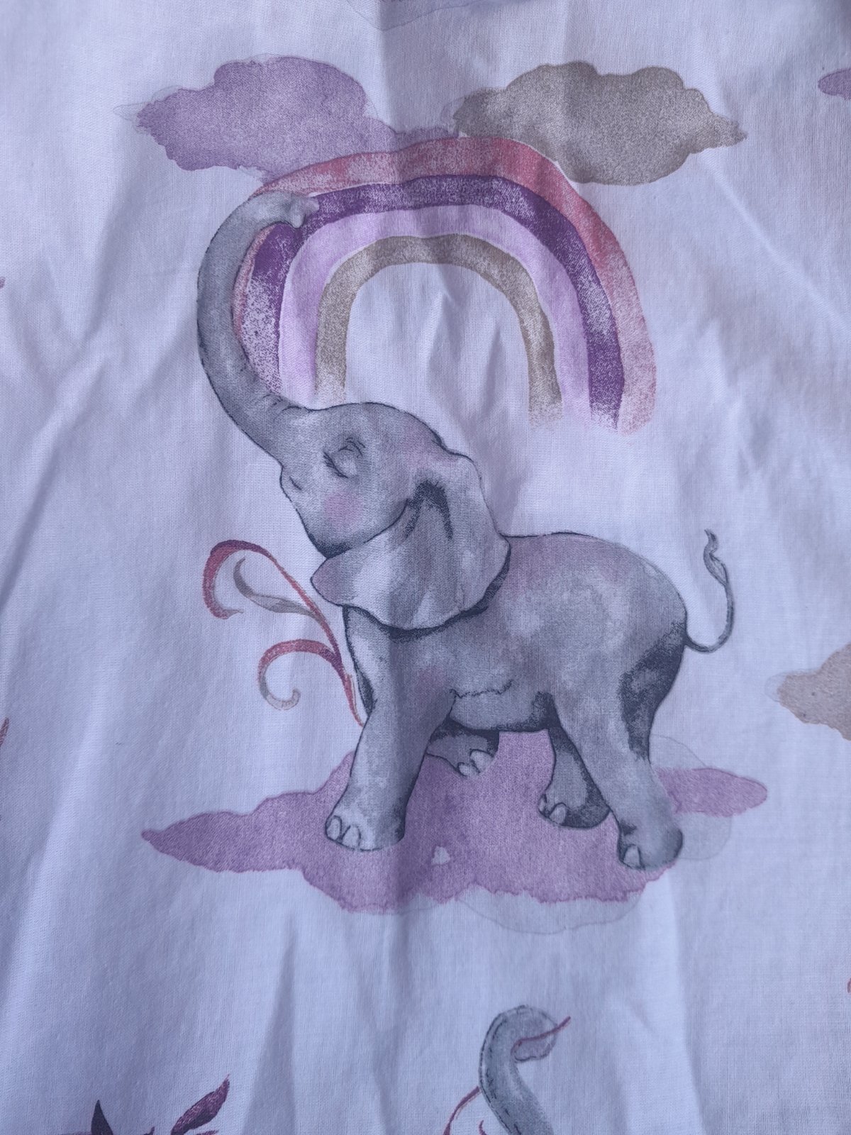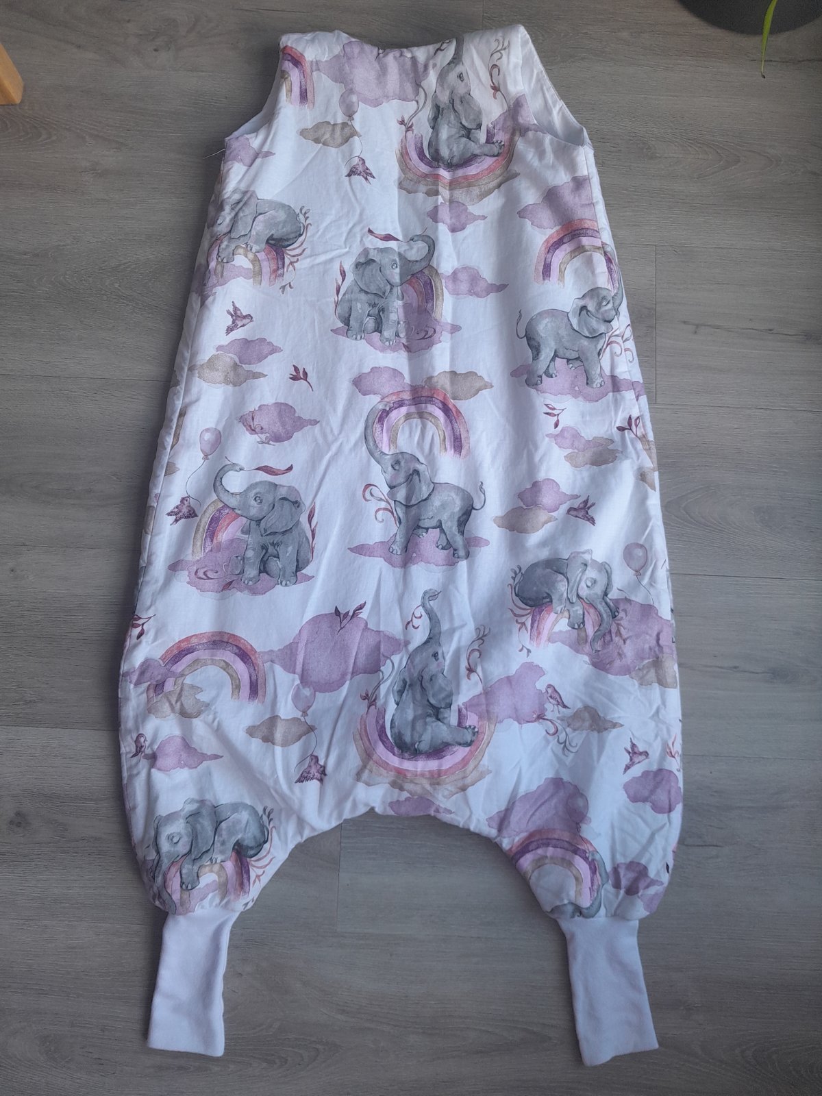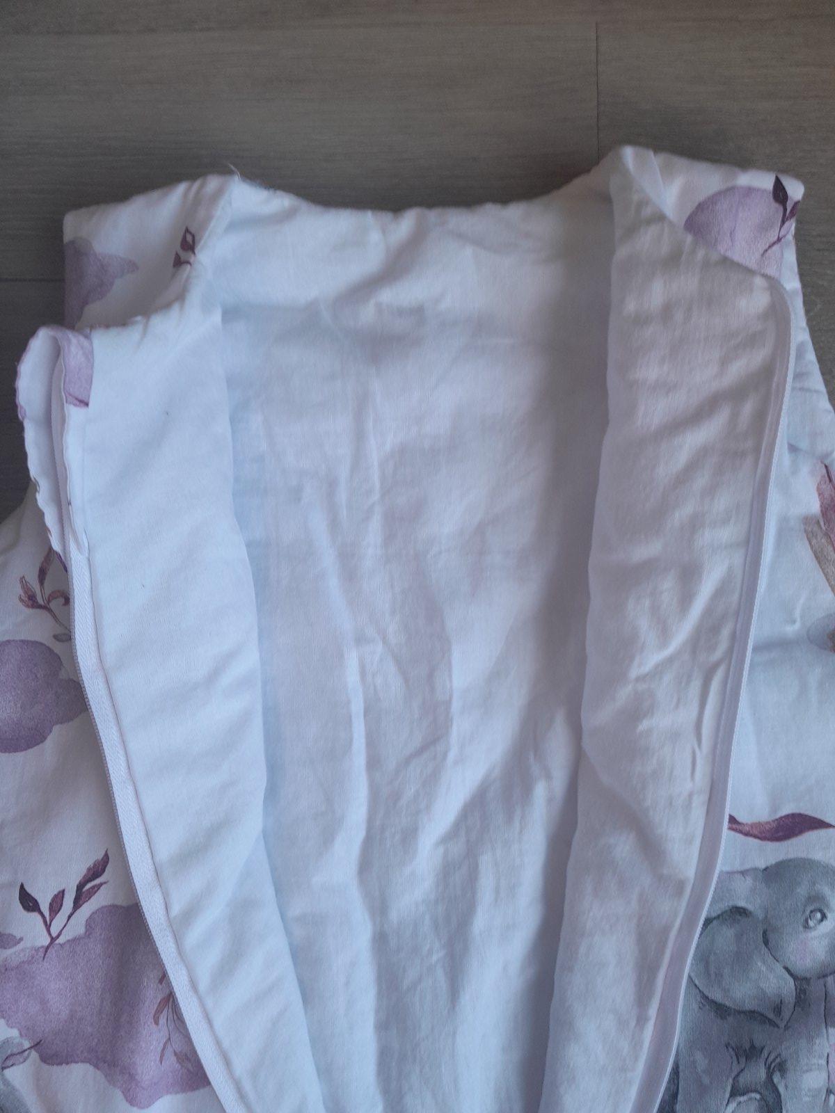 Predam spaci vak velkost L, pre cca 4 - 6 rocne dieta. Je zatepleny, vhodny na prechodne obdobie a na zimu. Ma krasnu potlac, slonikov a duhy, obojstranny zips, predlzene manzety na nohach. Rozmery su uvedene na fotkach.