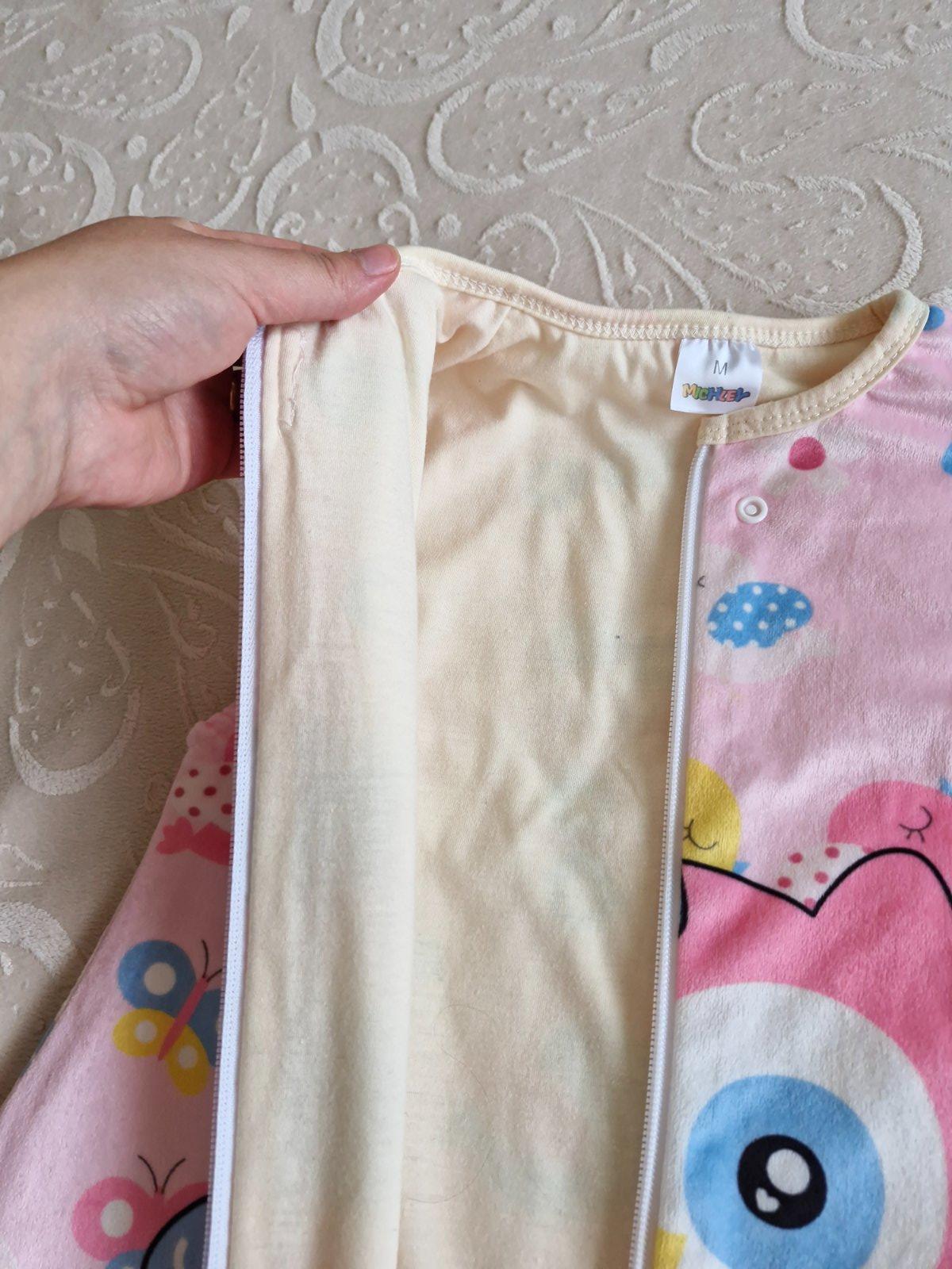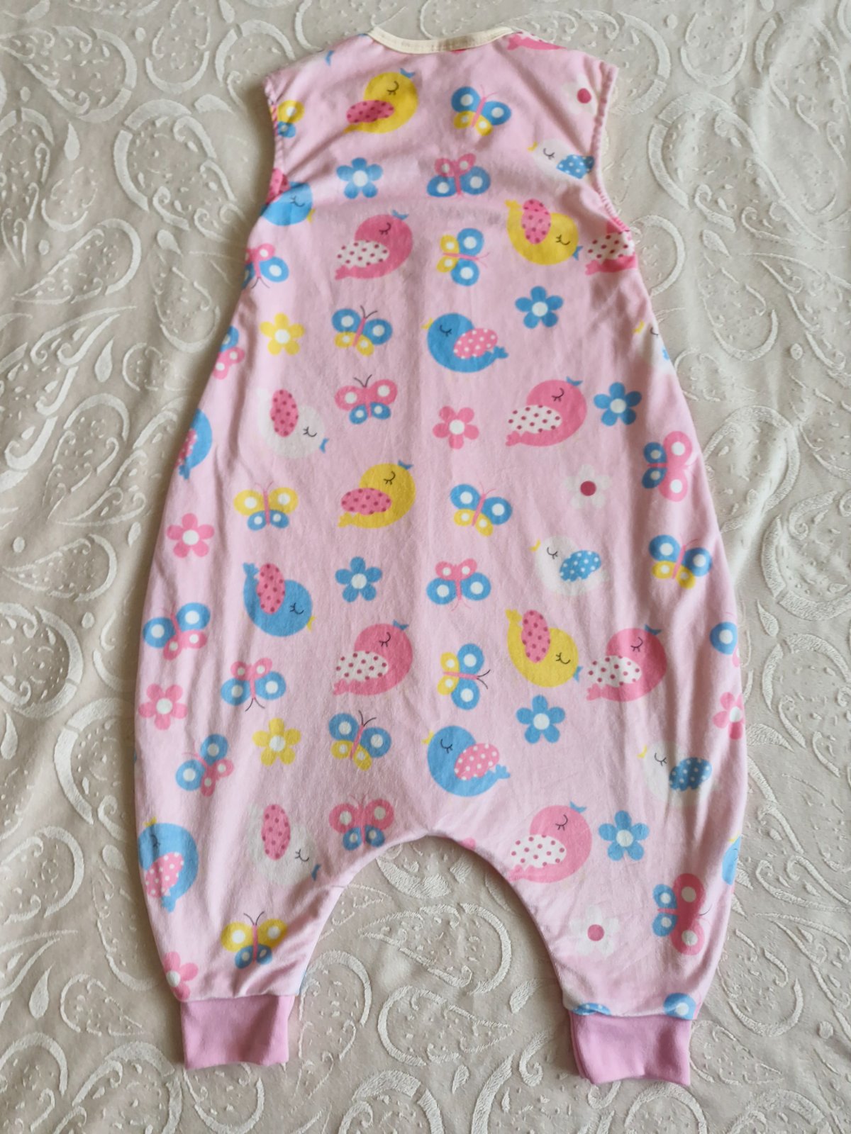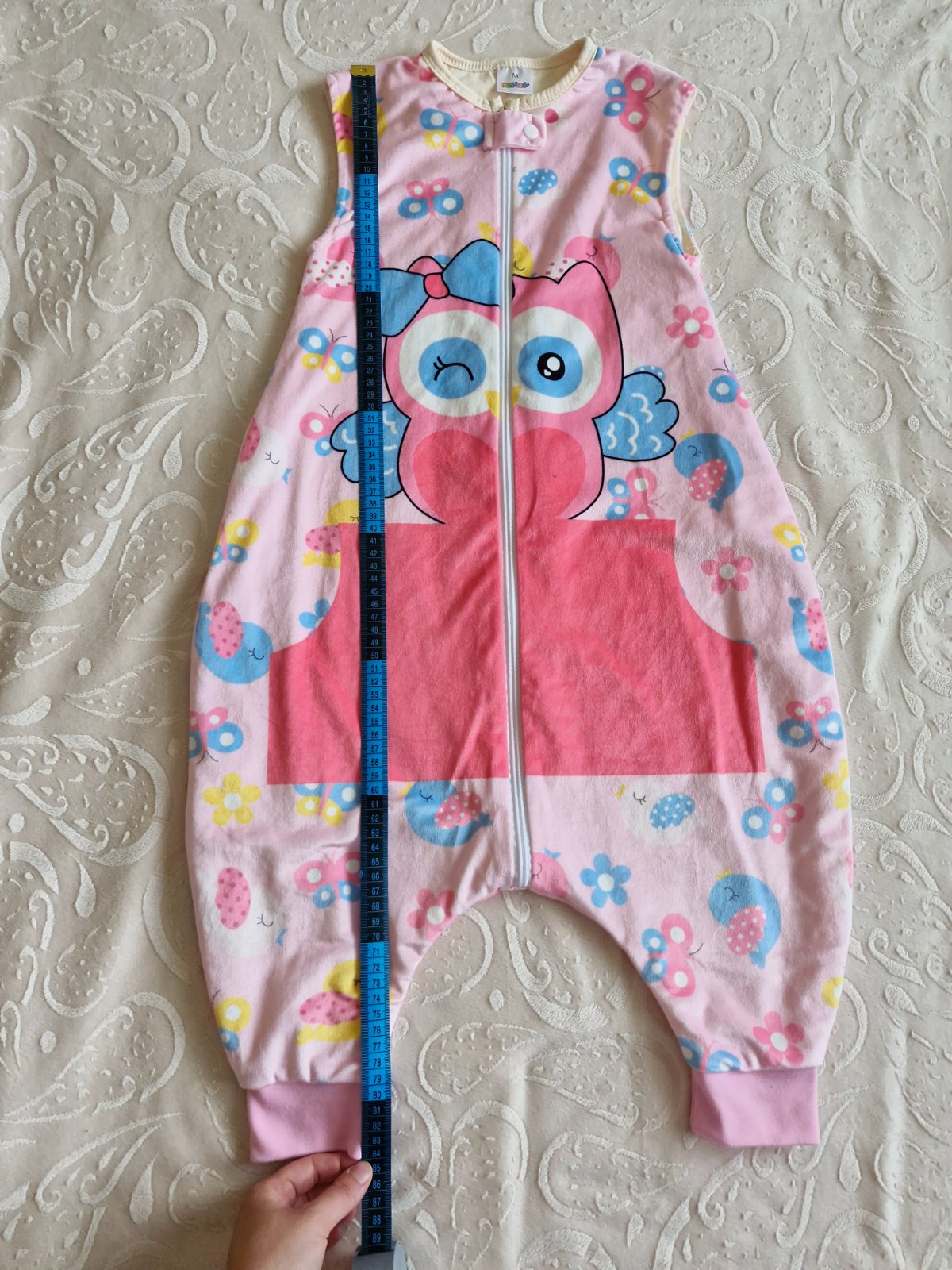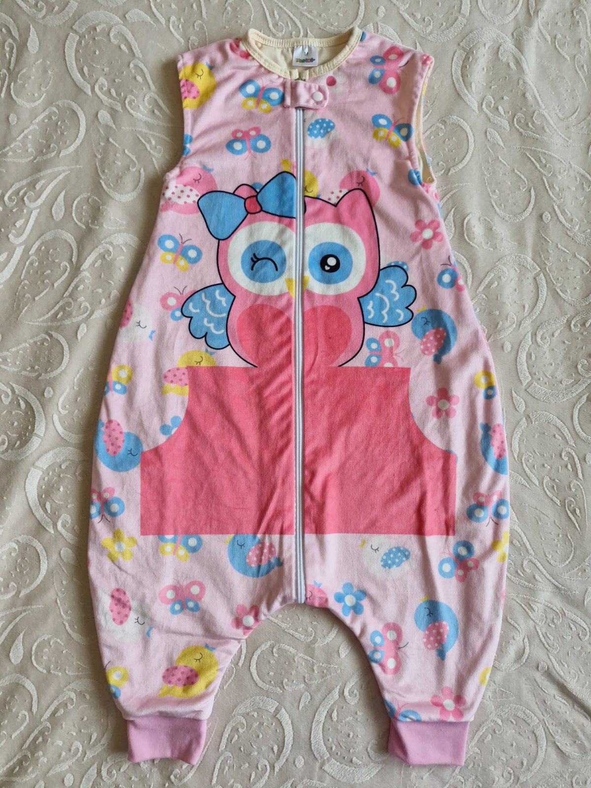 Spací vak, vhodný skôr na prechodné obdobie. Veľkosť je uvedená M, čo odpovedá na 3-5r, skôr odporúčam na 2-4r. Dĺžka na foto.
