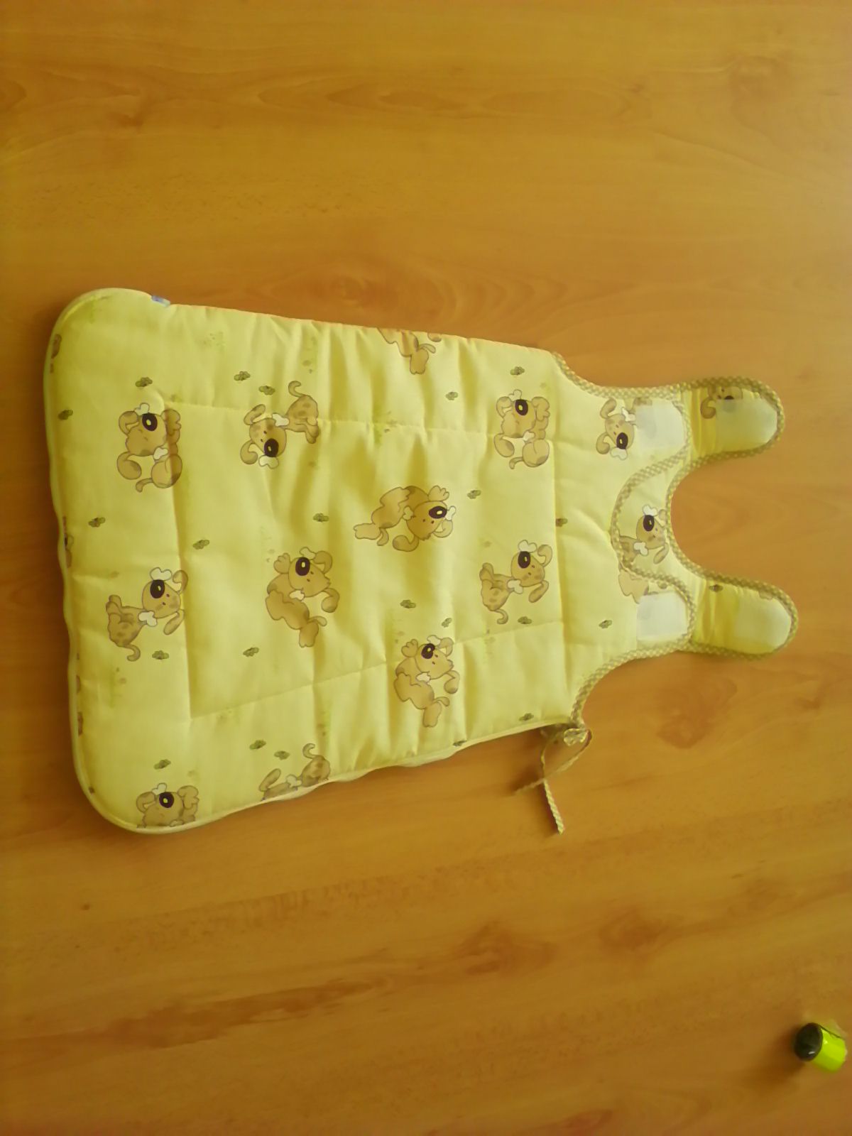 Nepouživany hrubší spací vak, zips nas boku, na ramienkach suchy zips pre jednoduche obliekanie.