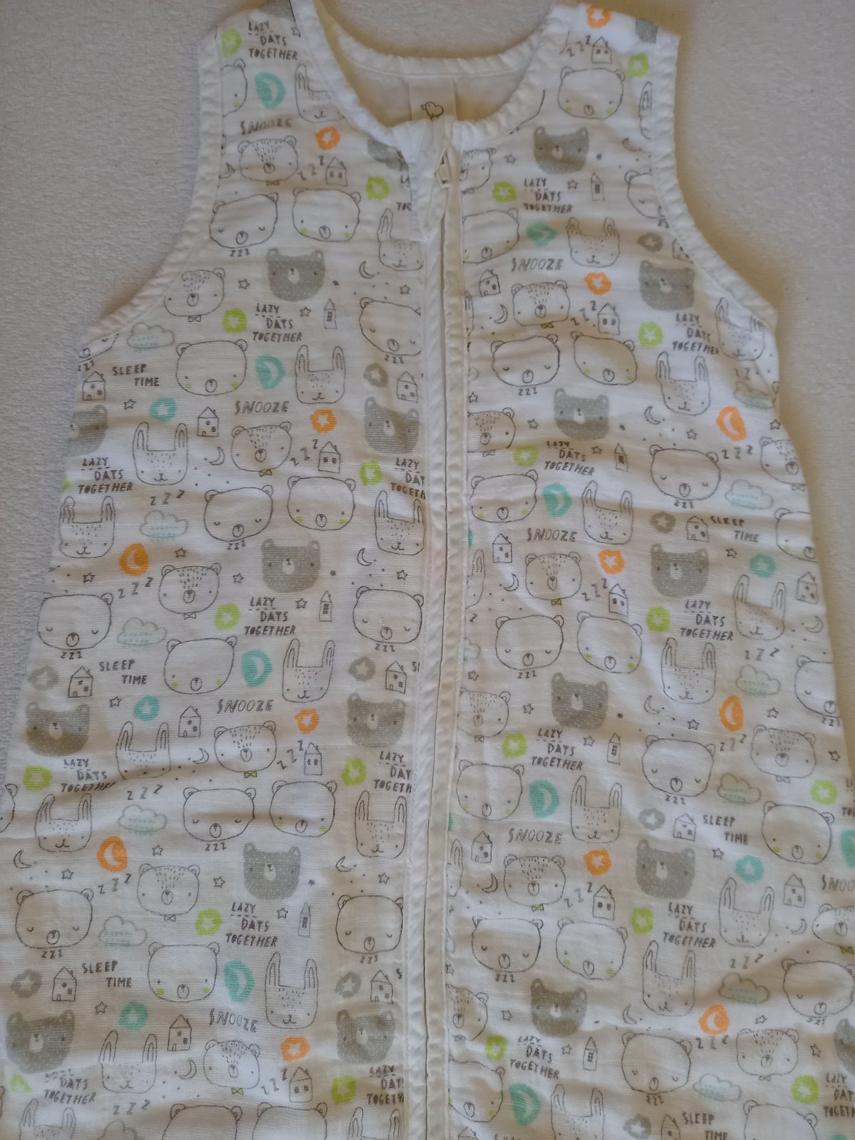 Letný spací vak, v super stave, ako nový, krásna biela, použitý párkrát, bez fľakov, bez akýchkoľvek poškodení, dvojitá látka: vonkajšia je ako plienková, vnútorná je tenká bavlna.