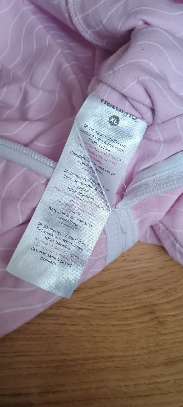 Spací vak, vhodný skôr na prechodné obdobie. Veľkosť je uvedená M, čo odpovedá na 3-5r, skôr odporúčam na 2-4r. Dĺžka na foto. Vak je v top stave, má jednu ďobku,bola tam už od kúpy, bol oblečený 1...