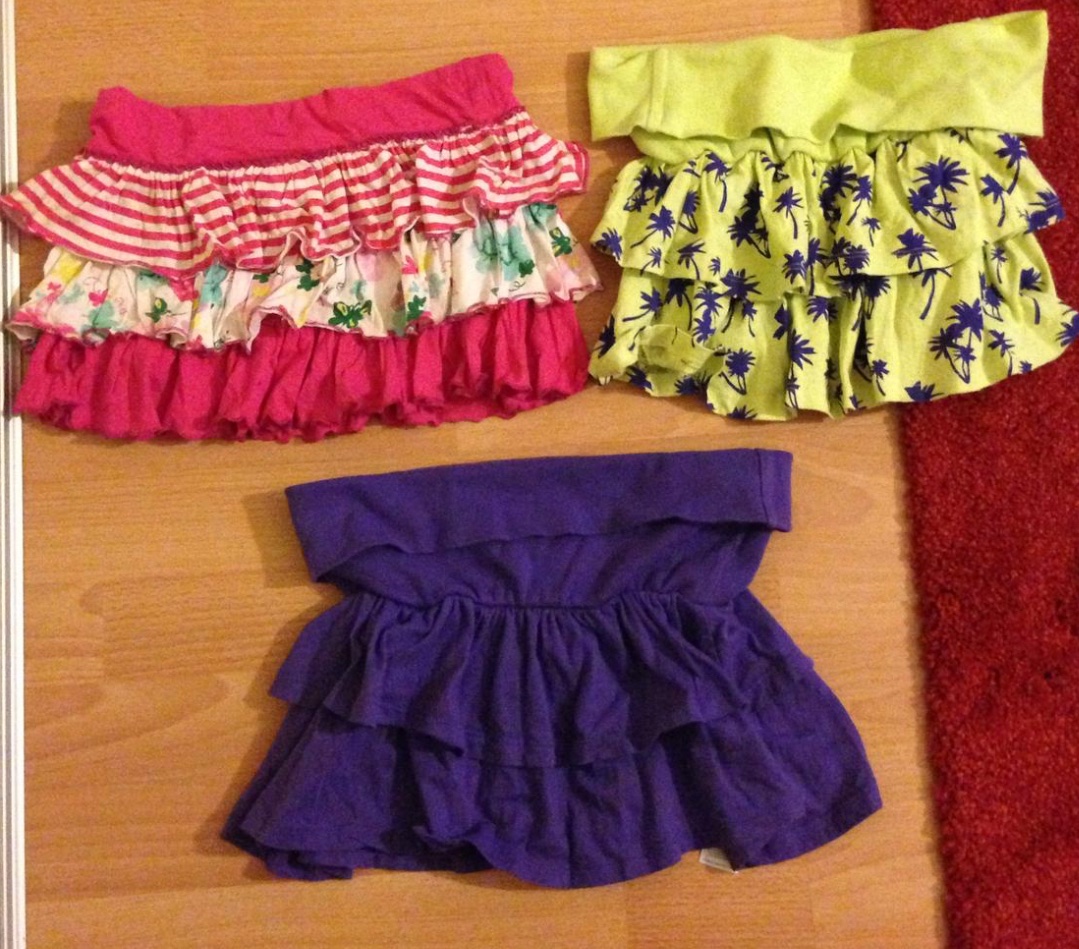 Predám sukne cena spolu10e 1va zn:tŕň: girls nosena ale ok len hore ako su pásiky rám je latka flakata mozno zíde oprat dlzka24cm,pas28cm vzadu este dolu mala dierka ..2ha dlzka27cm ,pas31cm skor taka bedrová 3tia dlzka26cm,pas33cm posta1,10 obycajne mel skr1tel