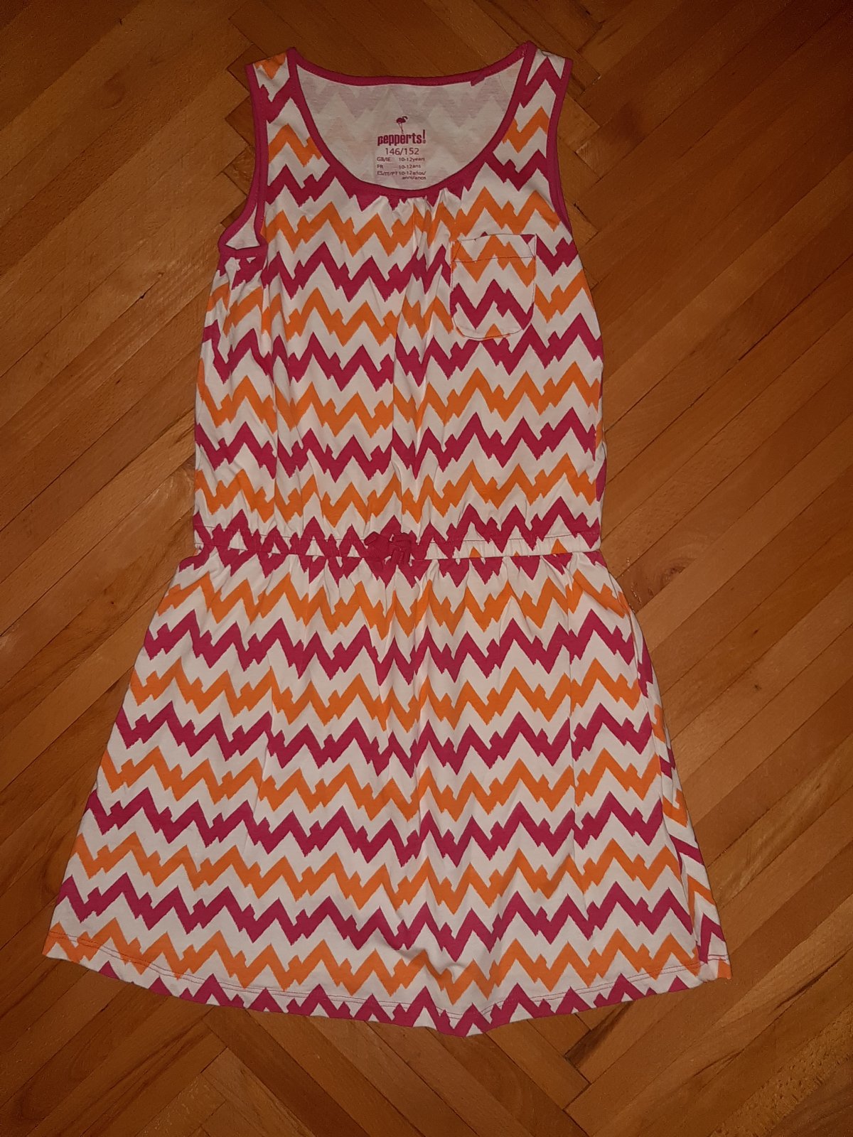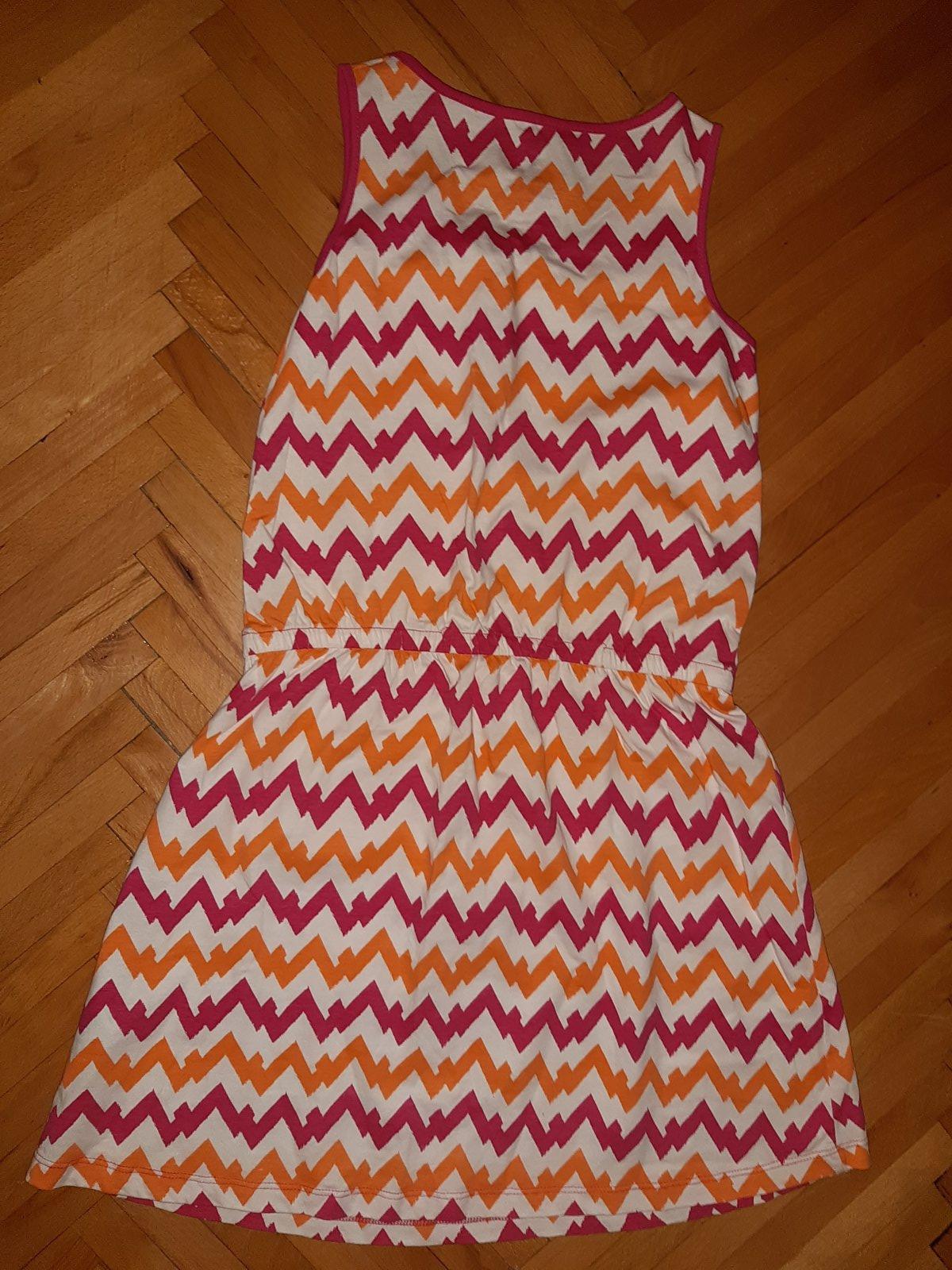 Letné dievčenské šaty v drieku zatiahnuté na gumu, nemajú žiadne poškodenia.