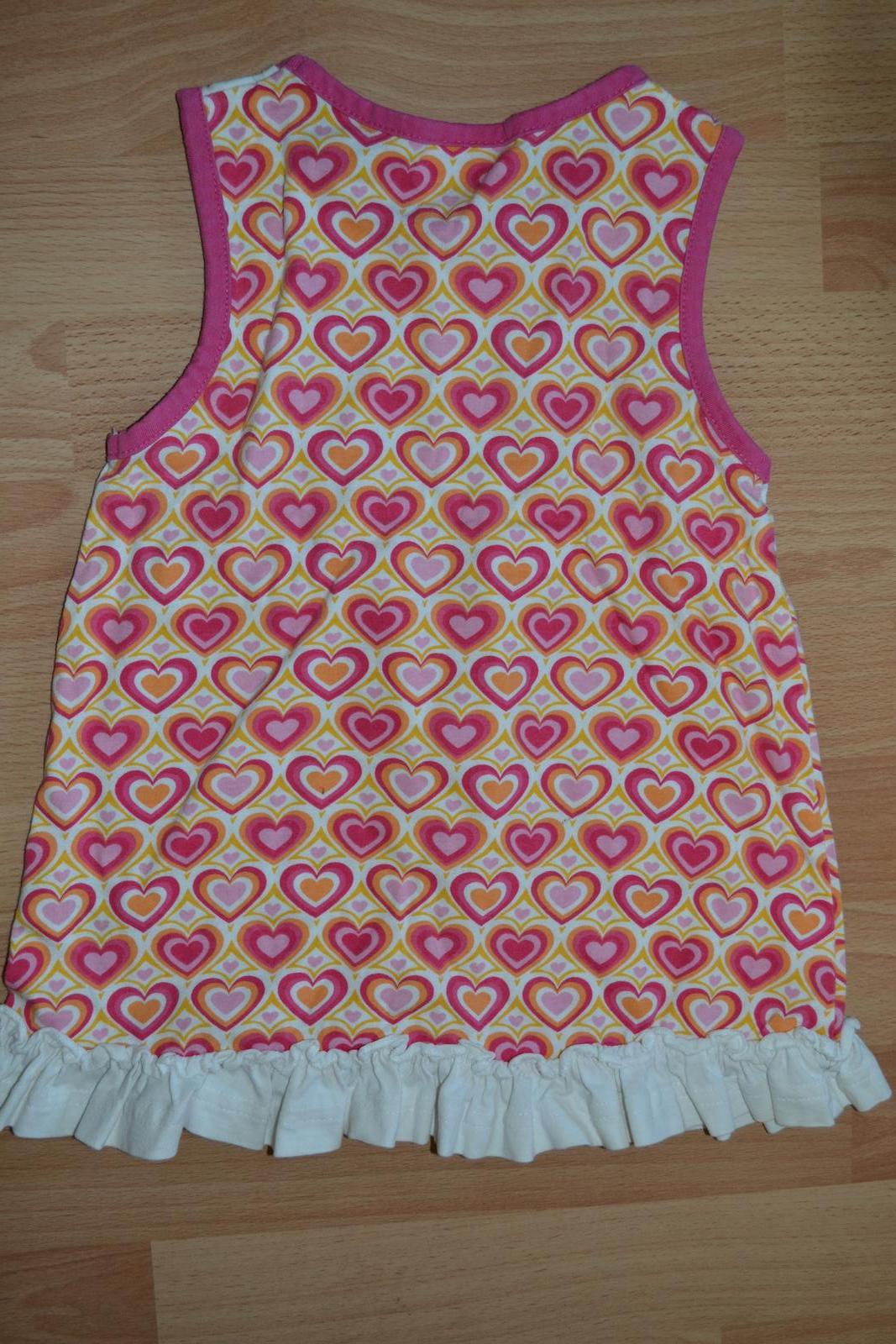 Šatky z tenkej rifloviny, vpredu pod lemom zastrihnute nožnicami asi 4 mm. Nie je to vidieť. Zachytené na fotke.