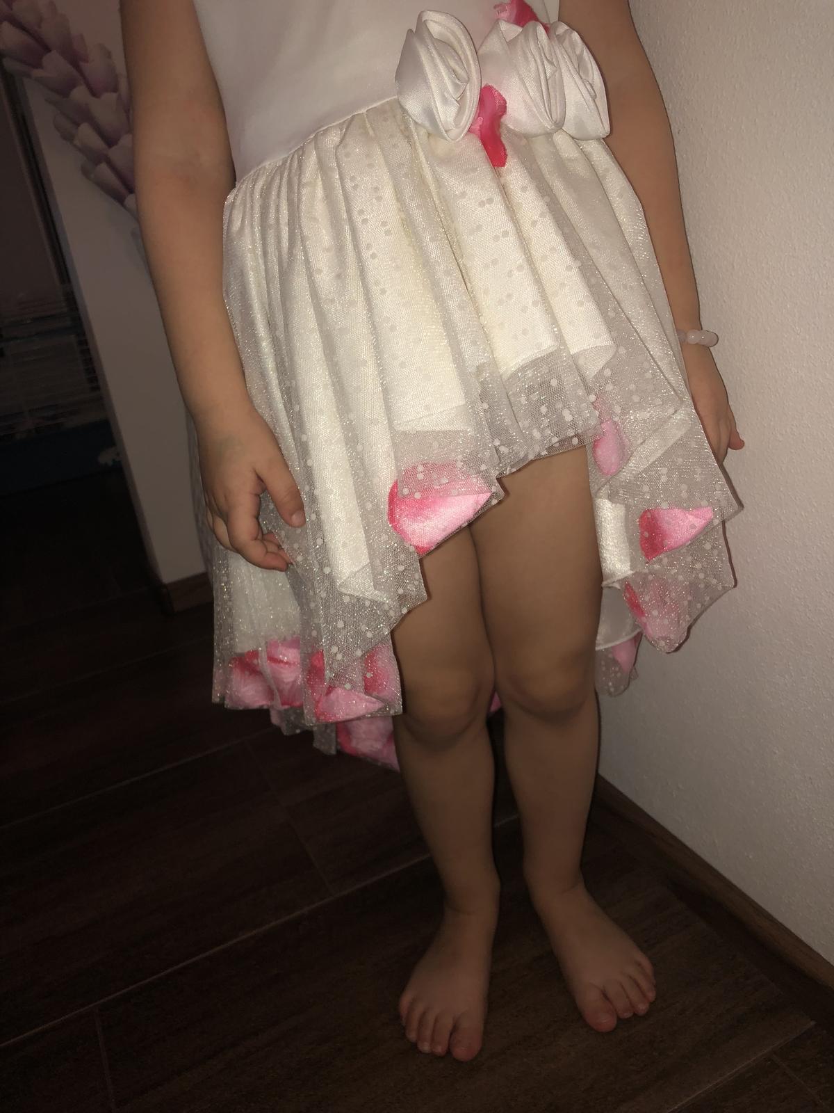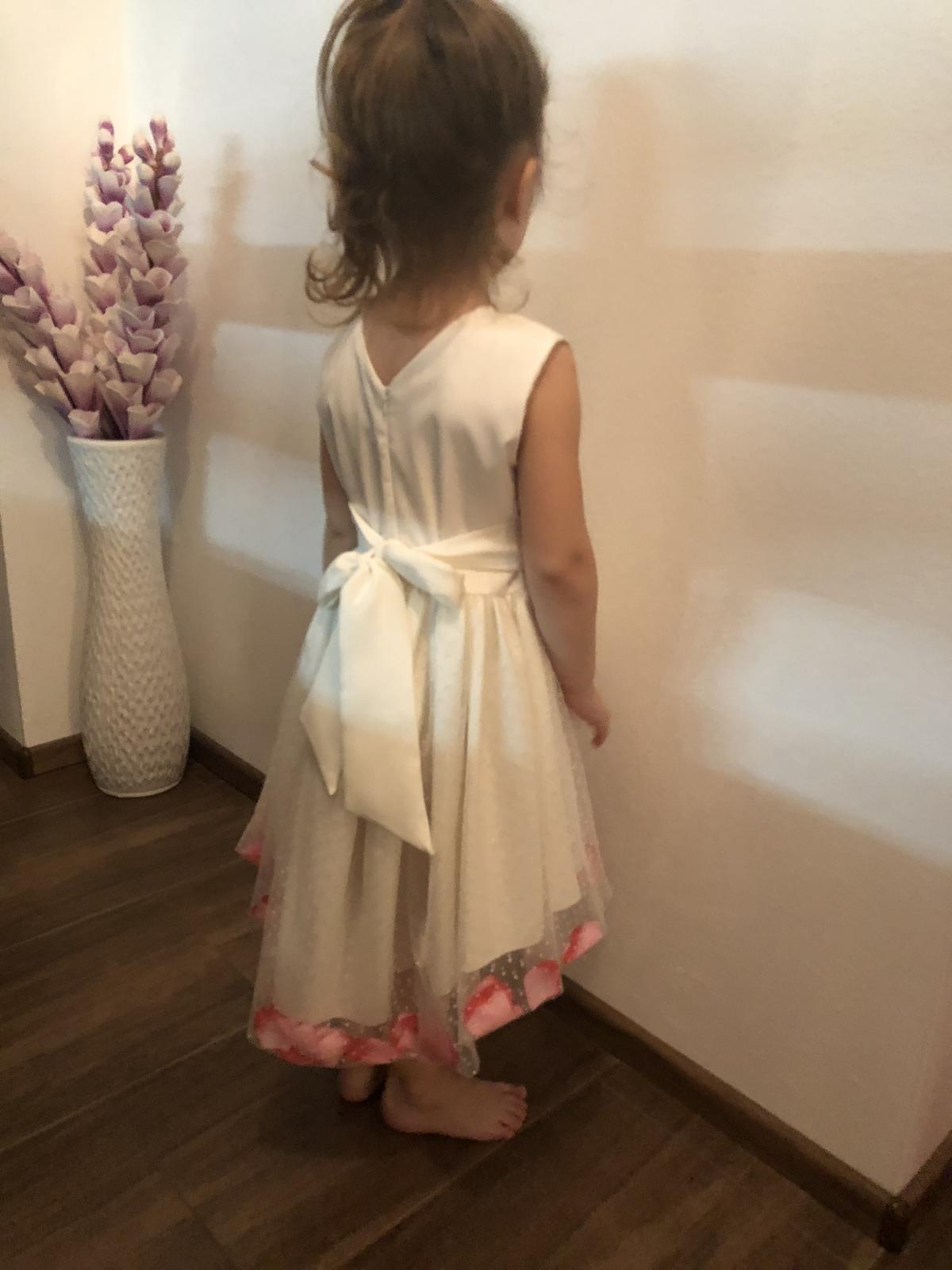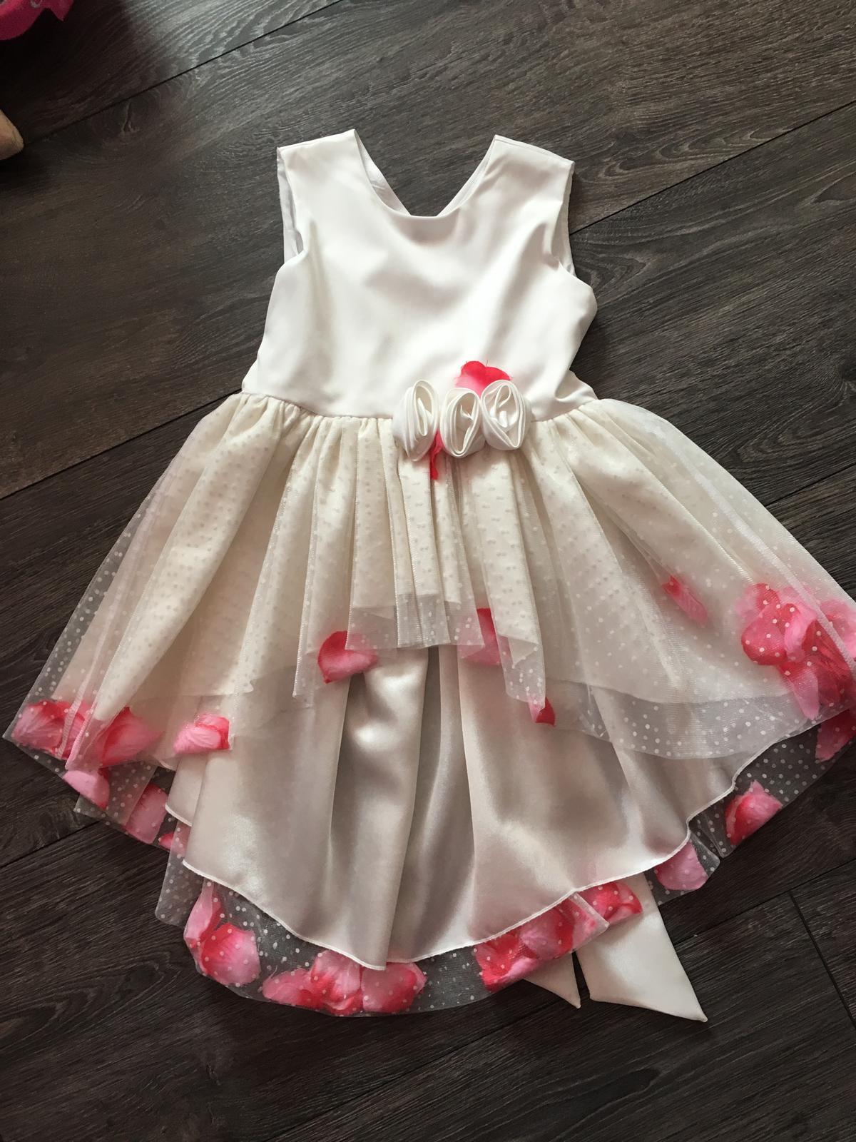 Šaty raz oblečené. V predu krátke a v zadu dlhšie.