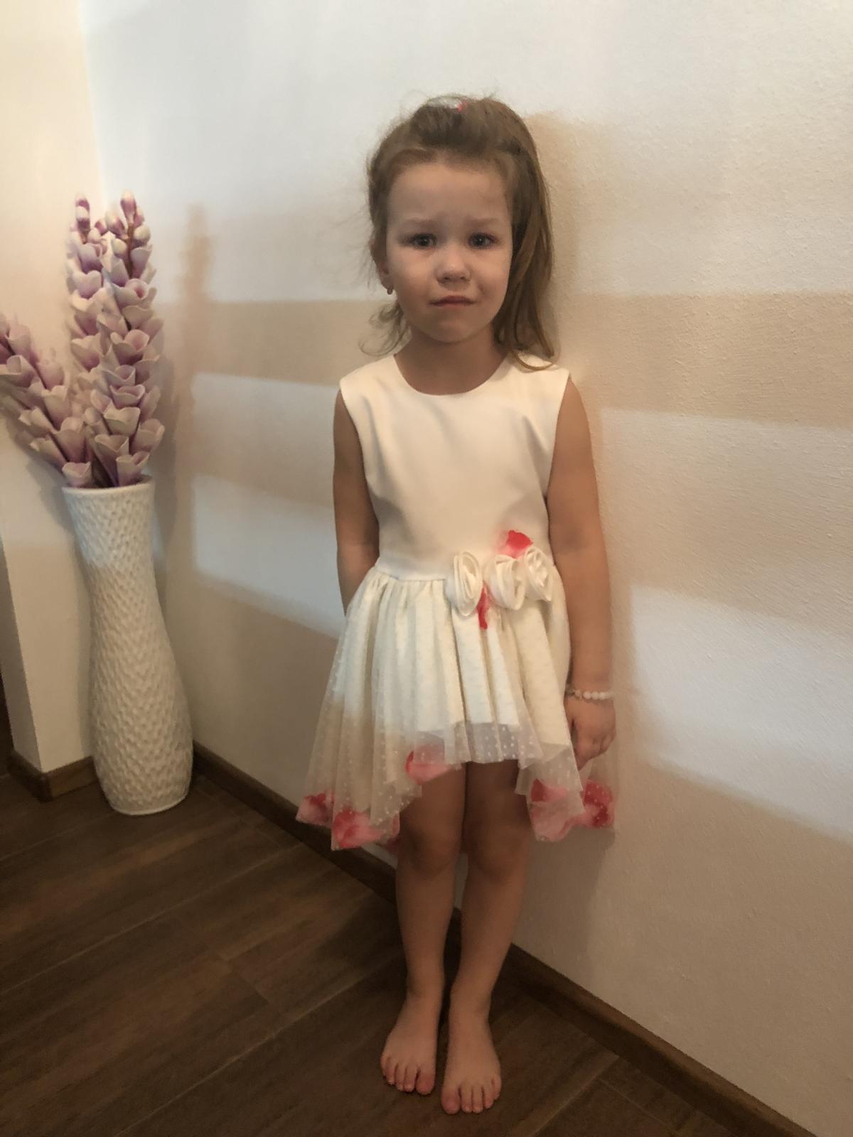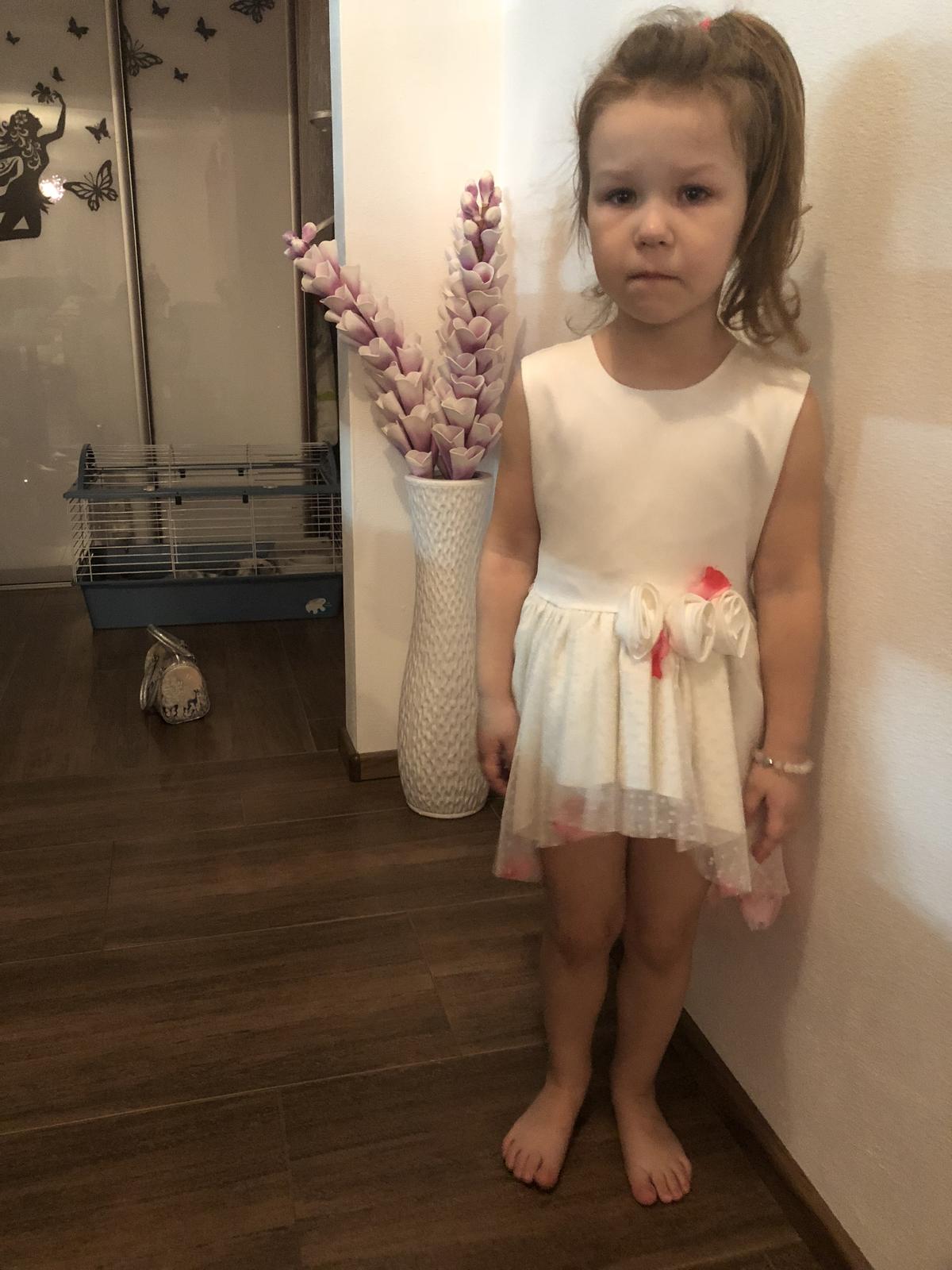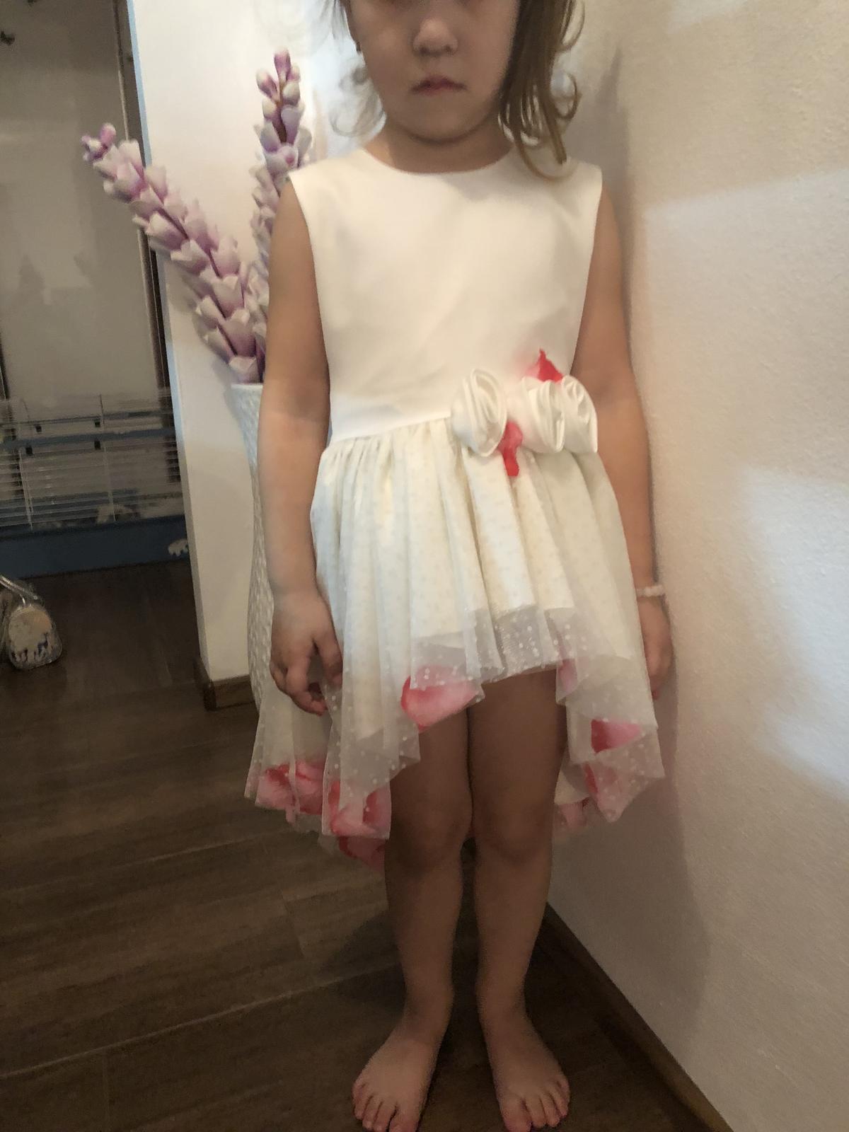Šaty raz oblečené. V predu krátke a v zadu dlhšie.