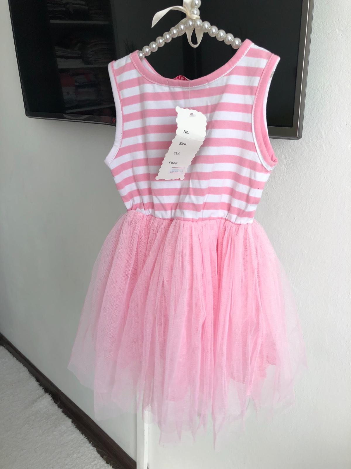 Krásne tylové šaty. Veľkosť uvádzaná na 4 roky, v skutočnosti sú menšie, keďže pás je posadený vyššie. Kúpili sme ich na bazári, no nestihli sme ich vynosiť.