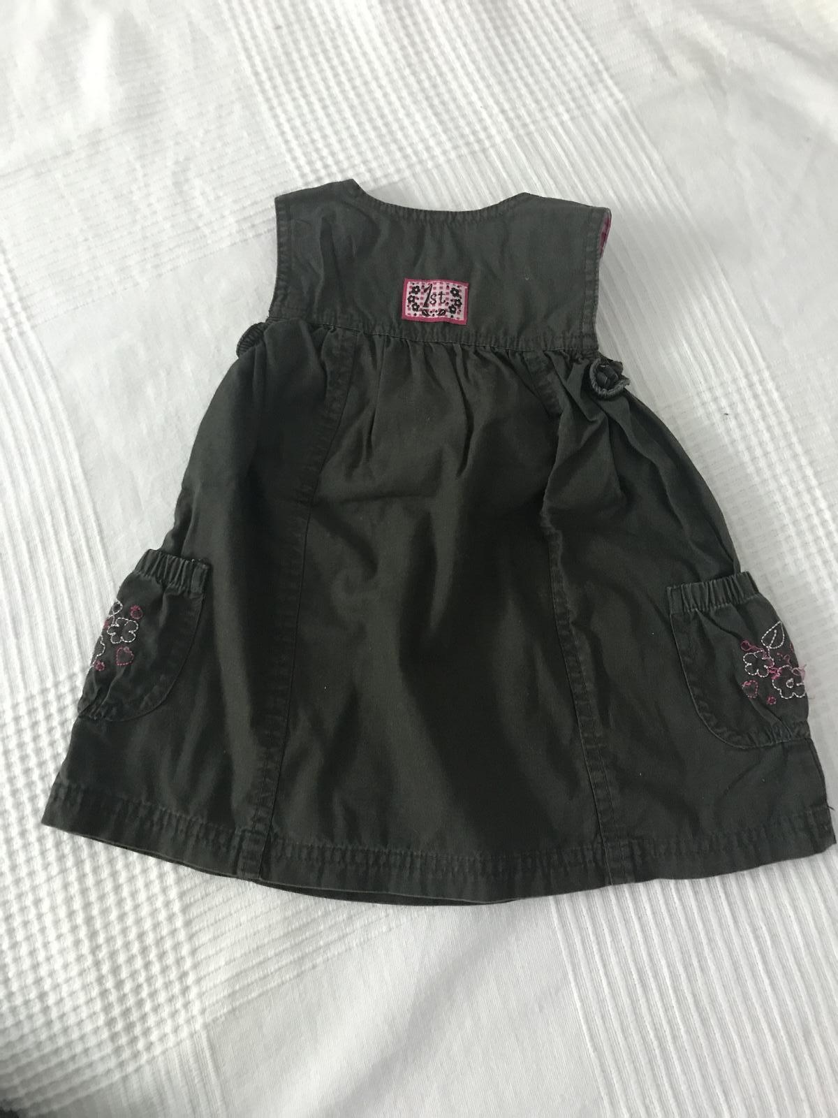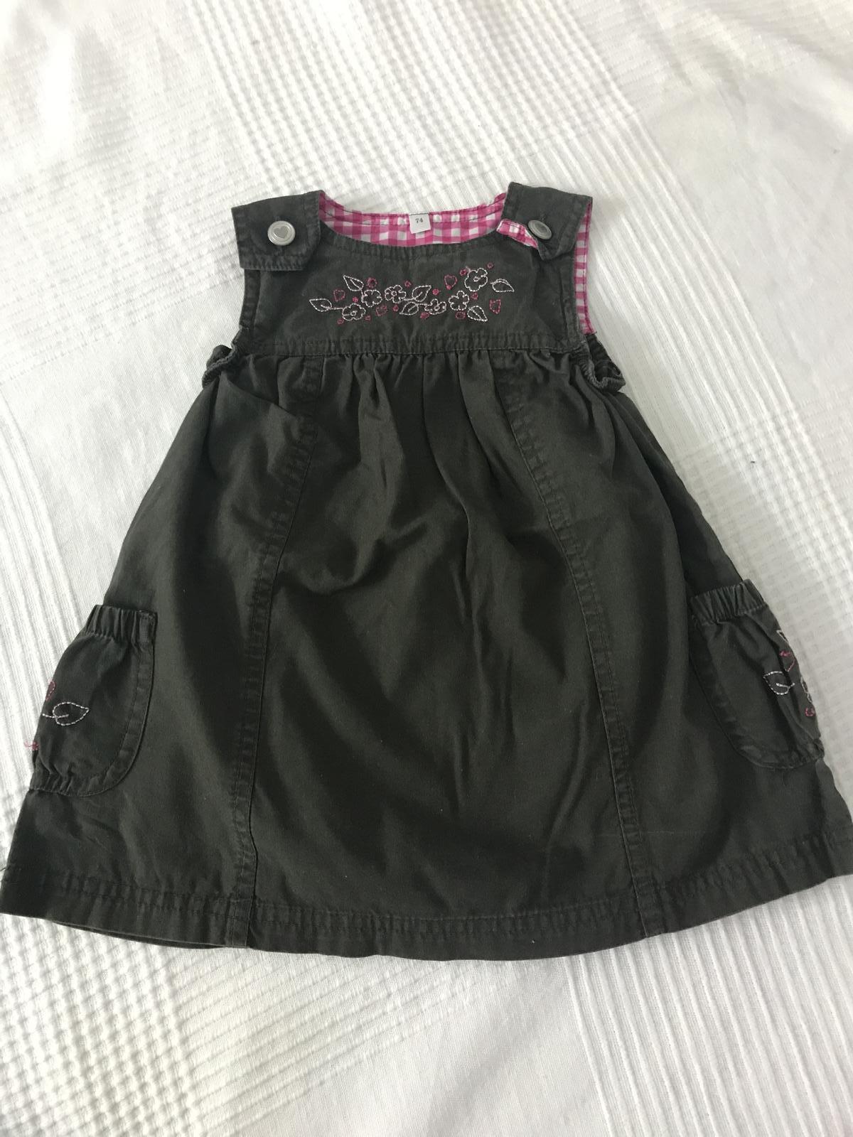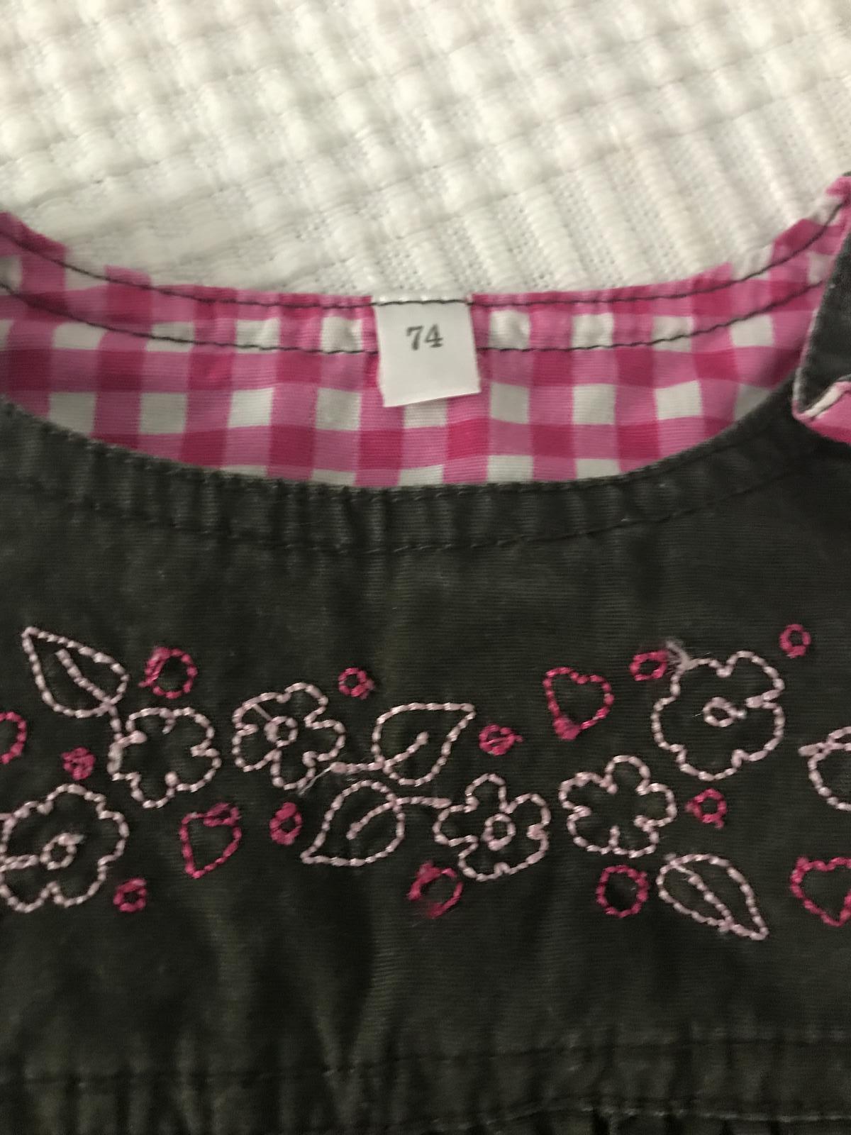 Šaty na traky s aplikáciami a vreckami. 74-80, 9-12 mesiacov. Top stav