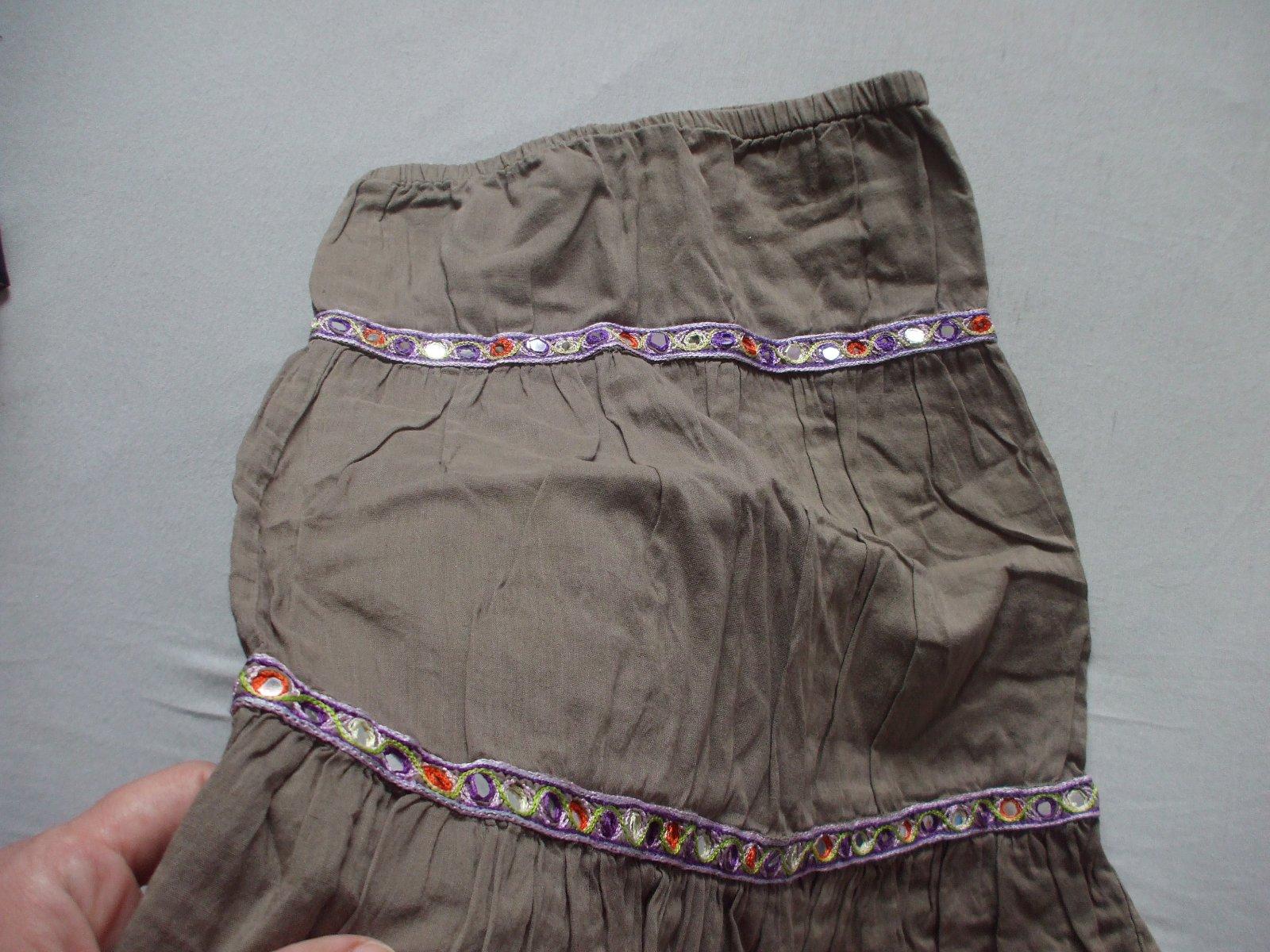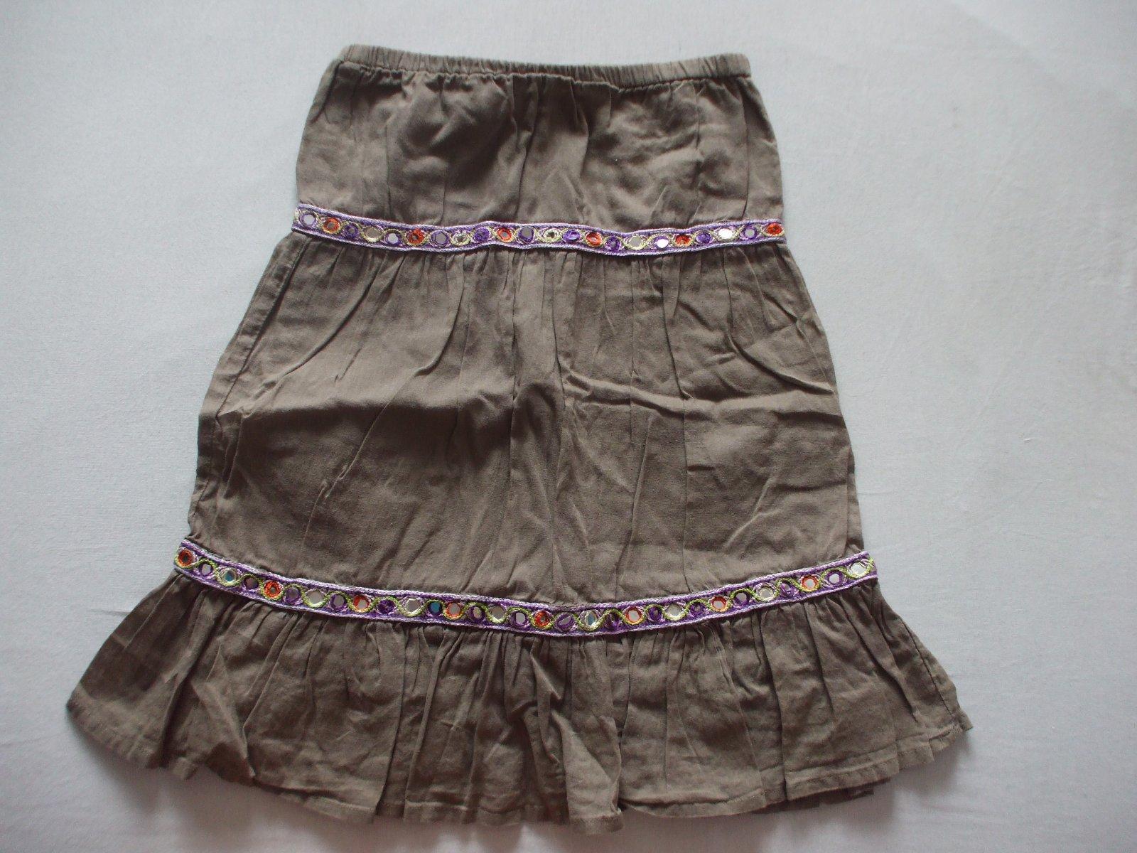Bezovohneda s ružovými pásikmi letná platená suknička. Veľkosť 122. Nastaviteľná gumicka v pase. Šírka v pase 30 cm.