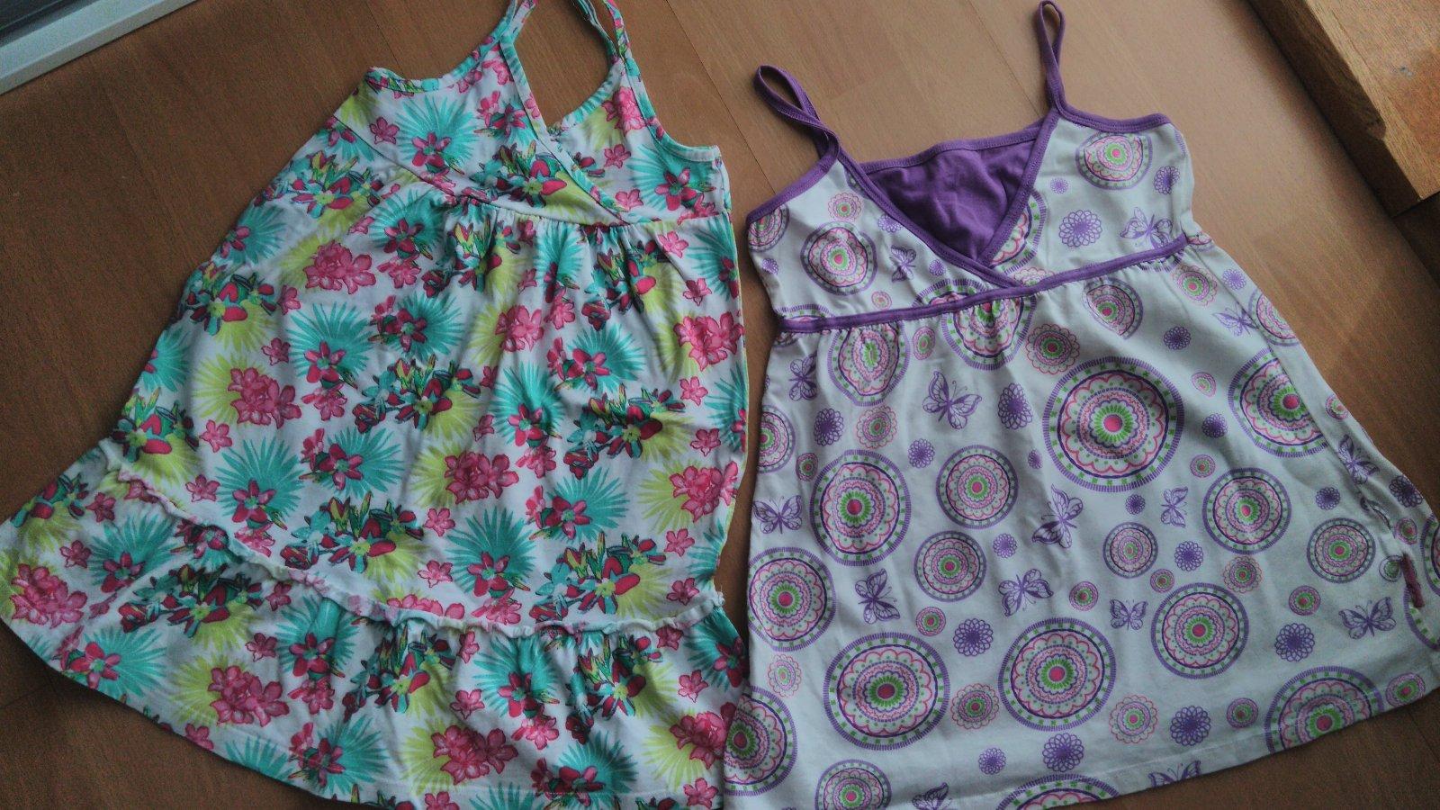 Predám nosené šaty fialové veľ.pisana 152 ale podľa mňa taká 134 a kvietkovane veľ písaná 122/128 ale podľa mňa tiež taká 134.Vyborny stav bez poškodenia.Cena je za 1 kus.Kvietkovane šaty predané...