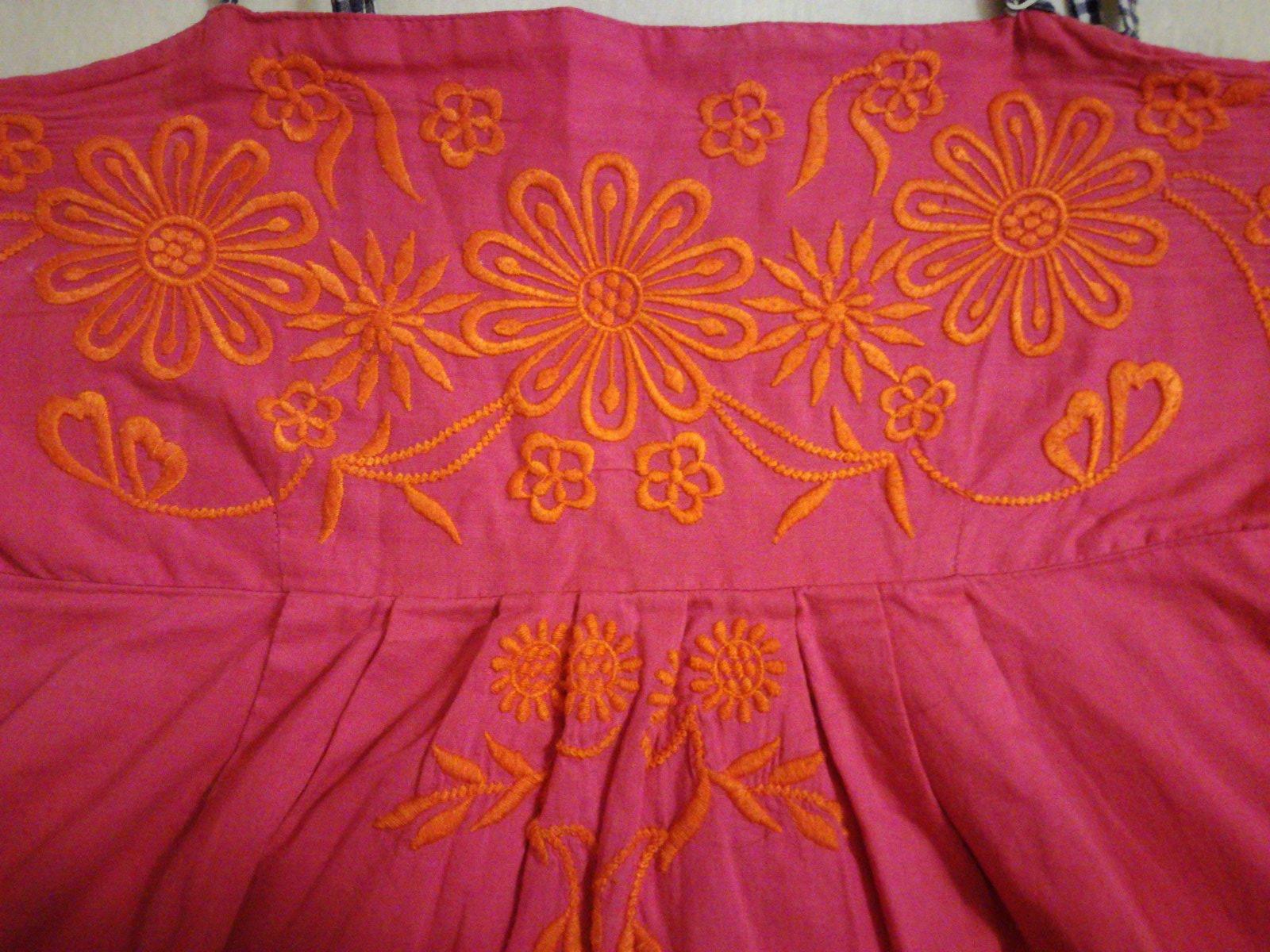 Ružové šaty alebo blúzka s nádychom folklóru. Predný diel má typickú výsivku, a ramienkami na posúvanie.